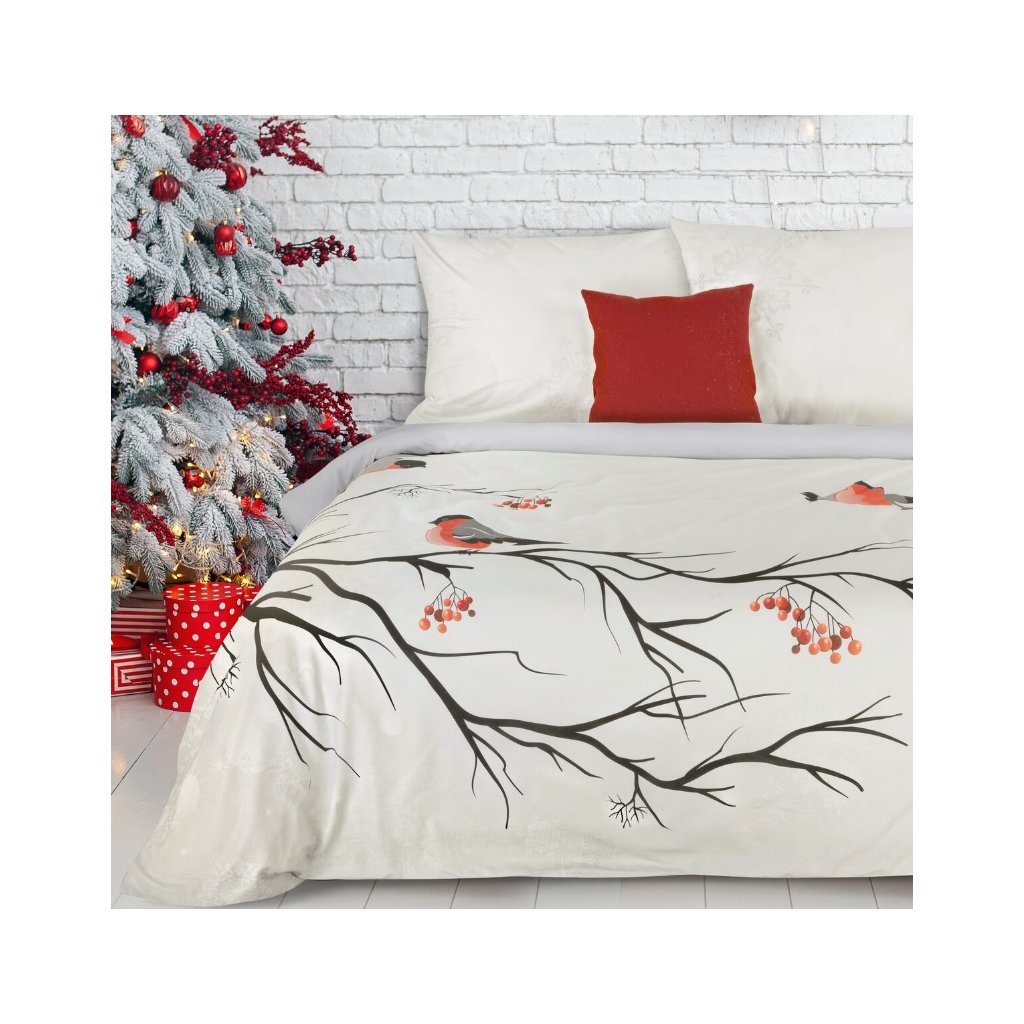 A gyönyörű BERRY karácsonyi egyszemélyes ágyneműhuzat madár ágon motívummal nemcsak egyedi kiegészítője otthonodnak, hanem nagyszerű ajándék is szeretteidnek. Lepd meg őket eleganciával és stílussal, amely egész télen örömet okoz majd nekik. A minőségi anyag tökéletes választás. Téli estéken felmelegít, és érdekes kialakításának köszönhetően dekoratív funkciót is betölt. A színek tartósak és többszöri mosás után sem veszítik el intenzitásukat .