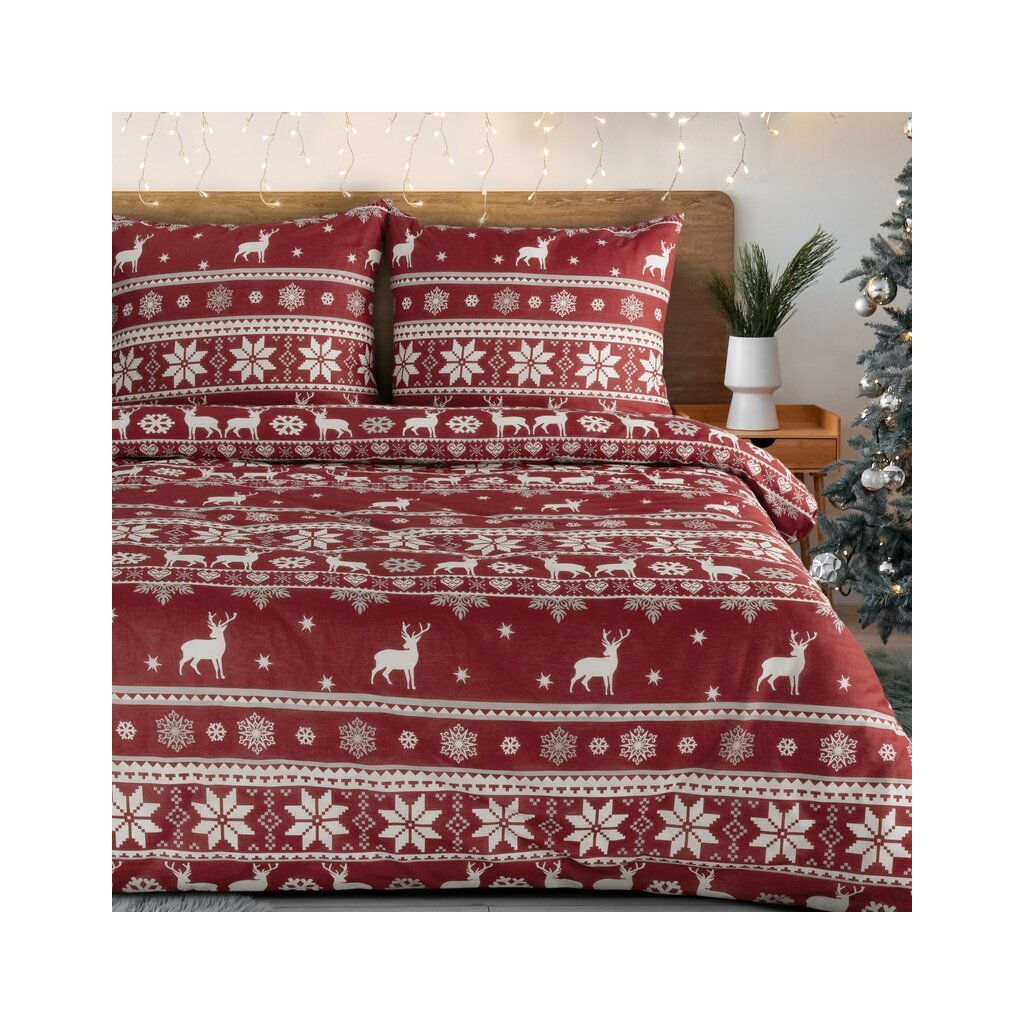 Karácsonyi ágyneműhuzat egyszemélyes ágyba OSLO | piros/fehér 140 x 200 cm