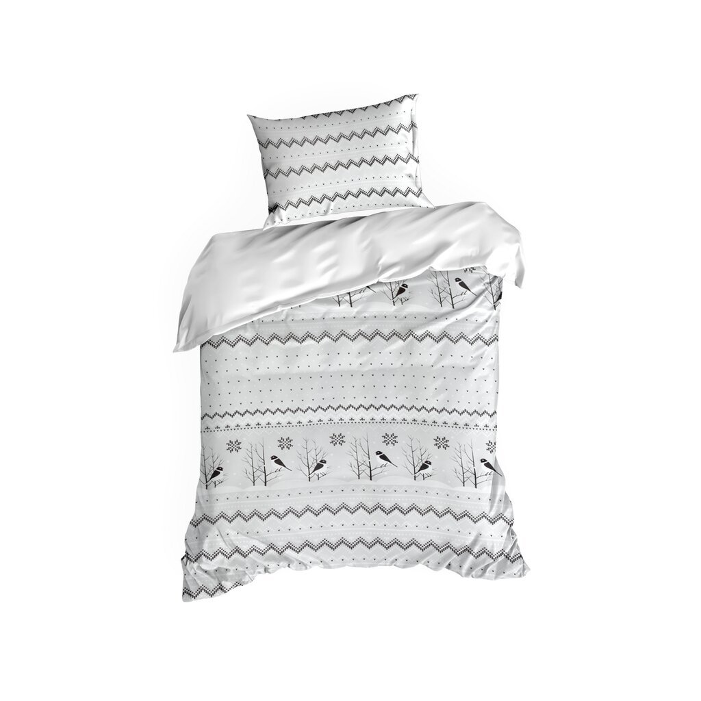 Szatén ágyneműgarnitúra karácsonyi mintával. Szélesség: 140 cm, Hossz: 200 cm, Szín: fehér, Súly: 115 GSM, Összetétel: szatén, 100% pamut, A csomag tartalma: 1 db 140 x 200 cm, 1 db 70 x 80 cm