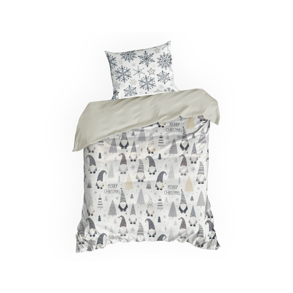 Karácsonyi ágyneműhuzat egyszemélyes ágyhoz TÖRPE | fehér/szürke 140 x 200 cm