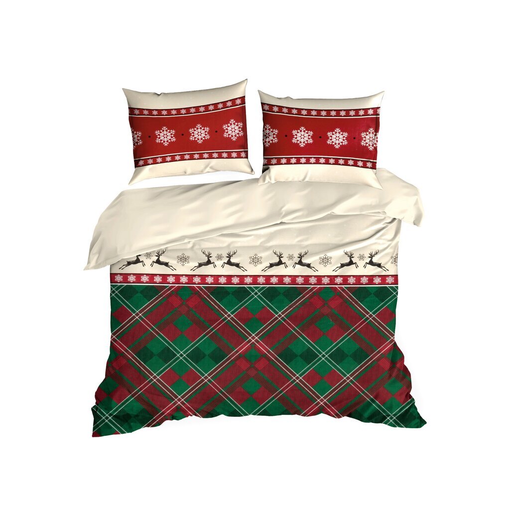 Pamut ágyneműgarnitúra karácsonyi mintával. Szélesség: 220 cm, Hosszúság: 200 cm, Szín: Piros, Súly: 105 GSM, Összetétel: Anyag: 100% pamut, A csomag tartalma: 1 db 220 x 200 cm, 2 db 70 x 80 cm