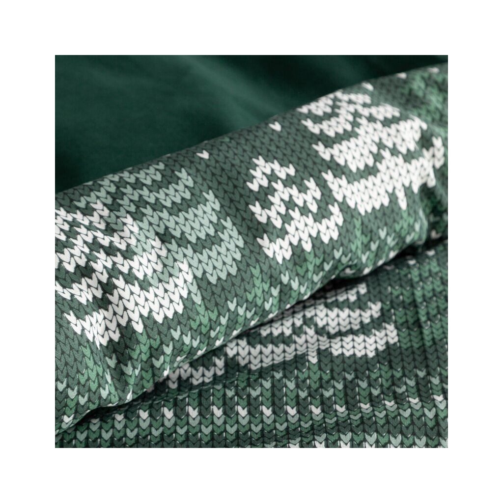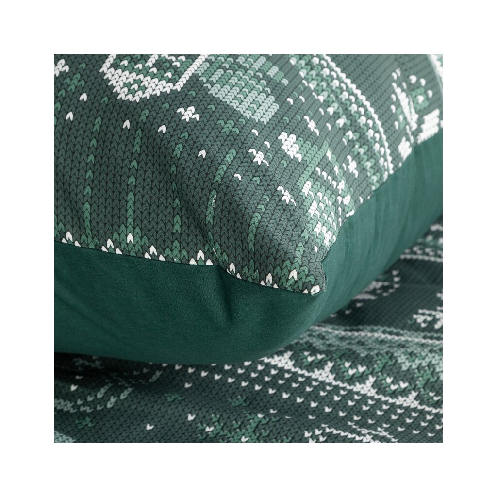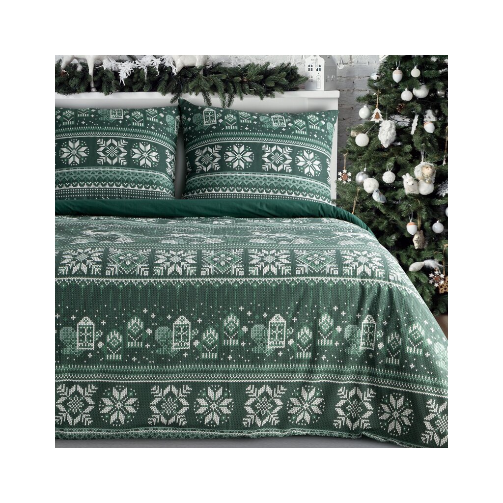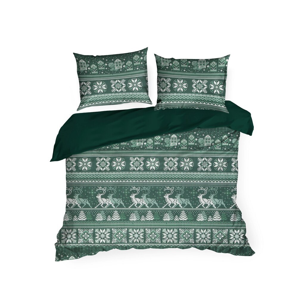 Pamut ágyneműhuzat-szett karácsonyi mintával. Szélesség: 220 cm, Hosszúság: 200 cm, Szín: Sötétzöld, Súly: 105 GSM, Összetétel: Anyag: 100% pamut, A csomag tartalma: 1 db 220 x 200 cm, 2 db 70 x 80 cm