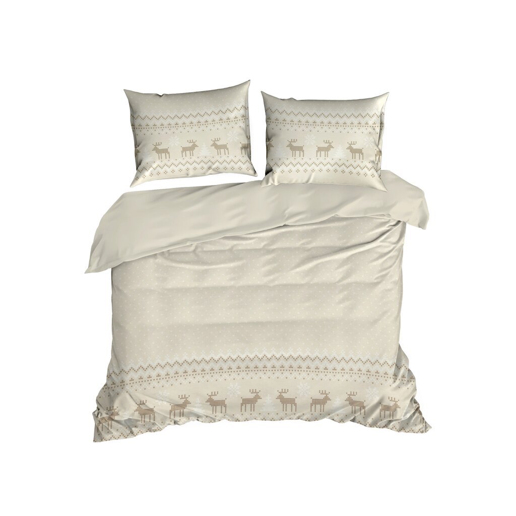 Pamut ágyneműgarnitúra karácsonyi mintával. Szélesség: 220 cm, Hosszúság: 200 cm, Szín: Bézs, Súly: 105 GSM, Összetétel: Anyag: 100% pamut, A csomag tartalma: 1 db 220 x 200 cm, 2 db 70 x 80 cm