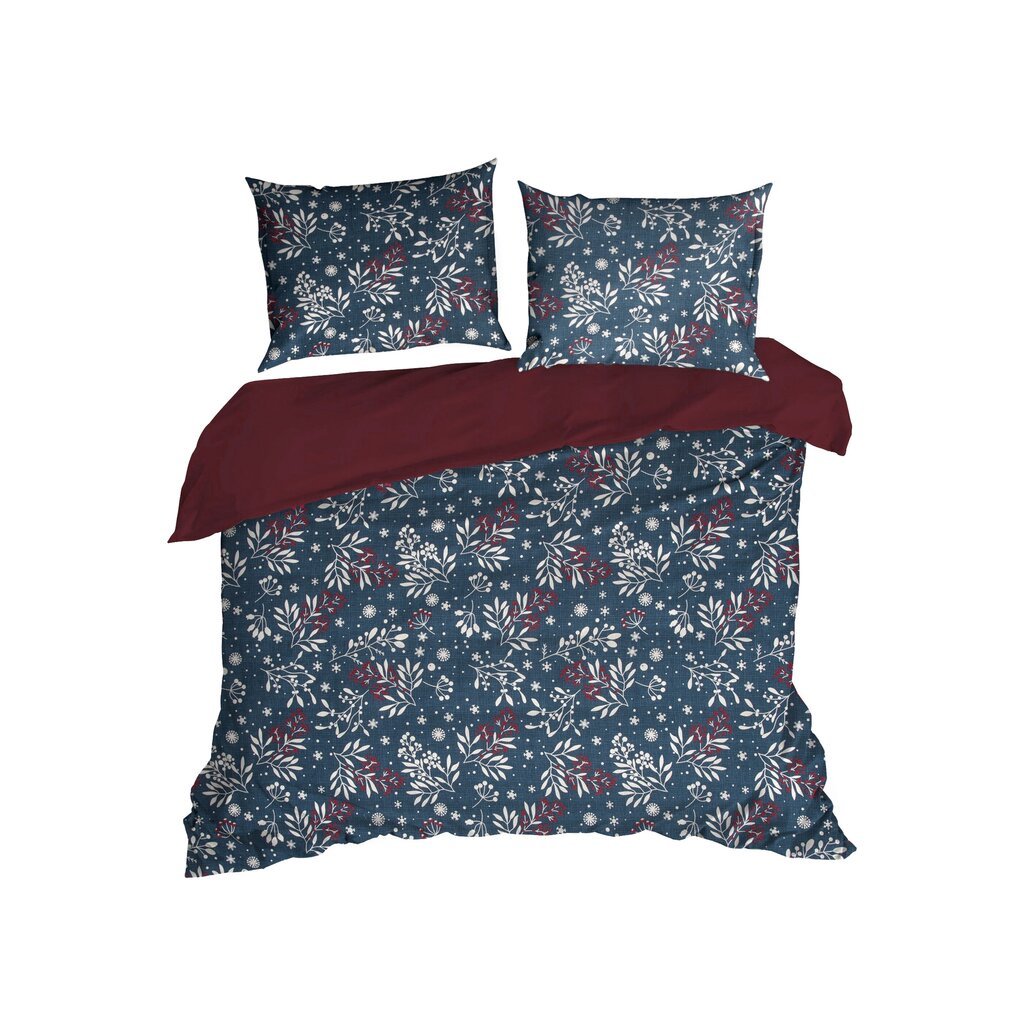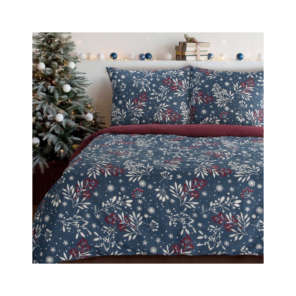 Pamut ágyneműgarnitúra karácsonyi mintával. Szélesség: 220 cm, Hosszúság: 200 cm, 2 db 70 x 80 cm, Szín: Sötétkék, Súly: 105 GSM, Összetétel: Anyag: 100% pamut