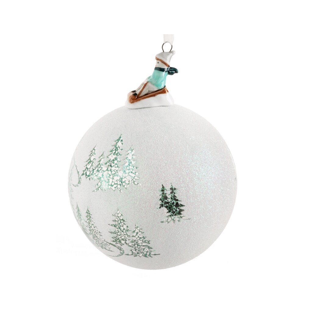 Karácsonyi dekoráció BALL 213B | üveg fehér/zöld 10 cm