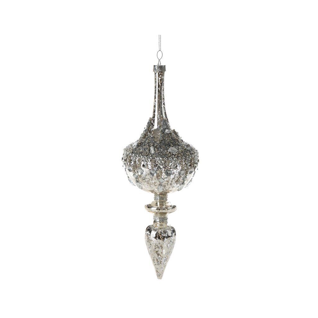 Gyönggyel díszített üvegdísz, szélesség: 8 cm, hossza: 25 cm, szín: ezüst, összetétel: összetétel: 100% üveg. A minimális rendelési mennyiség 4 db.