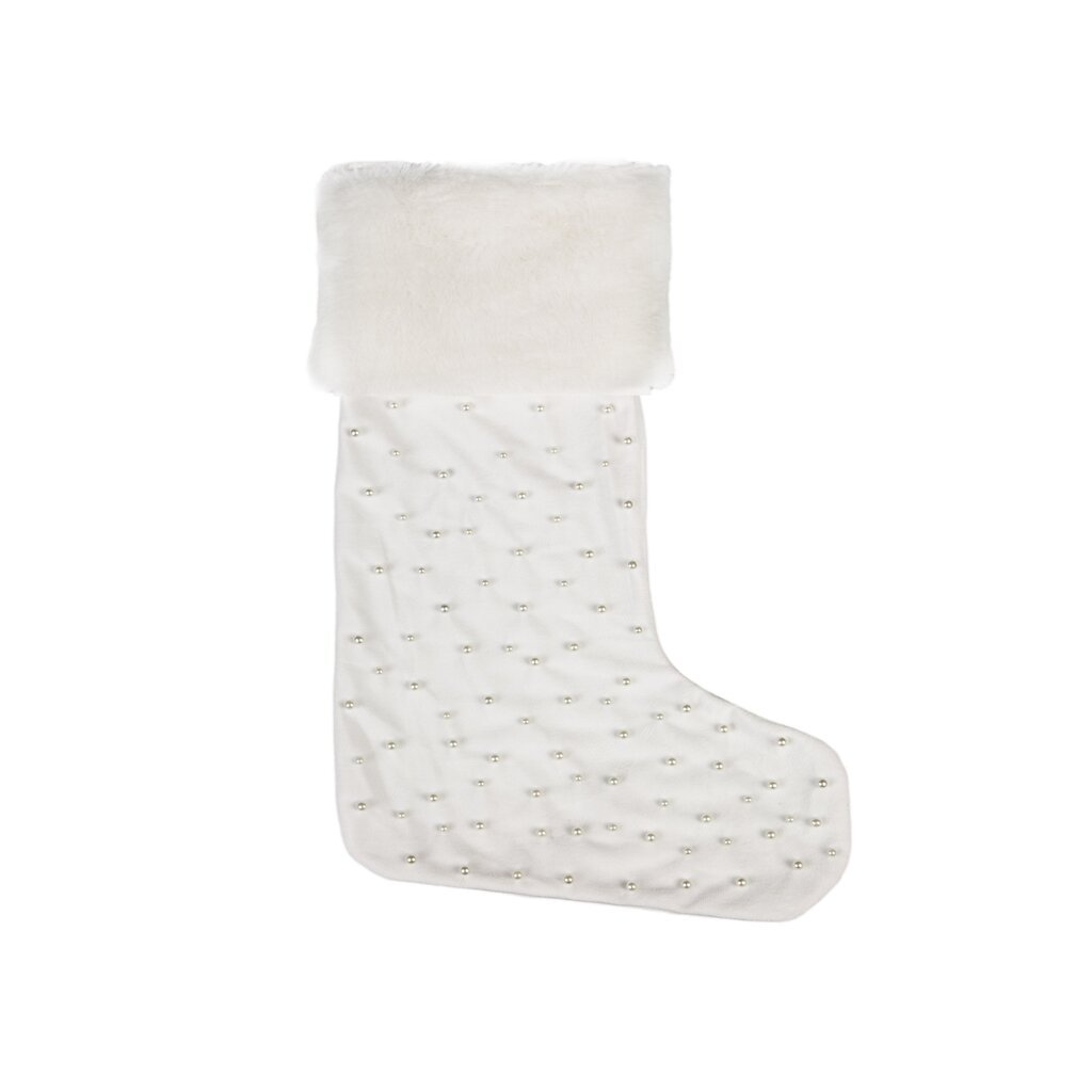 Bársony zokni bundával és varrott gyöngyökkel, szélesség: 25 cm, hossza: 45 cm, szín: krém, súly: 240 GSM, összetétel: Anyaga: 100% poliészter