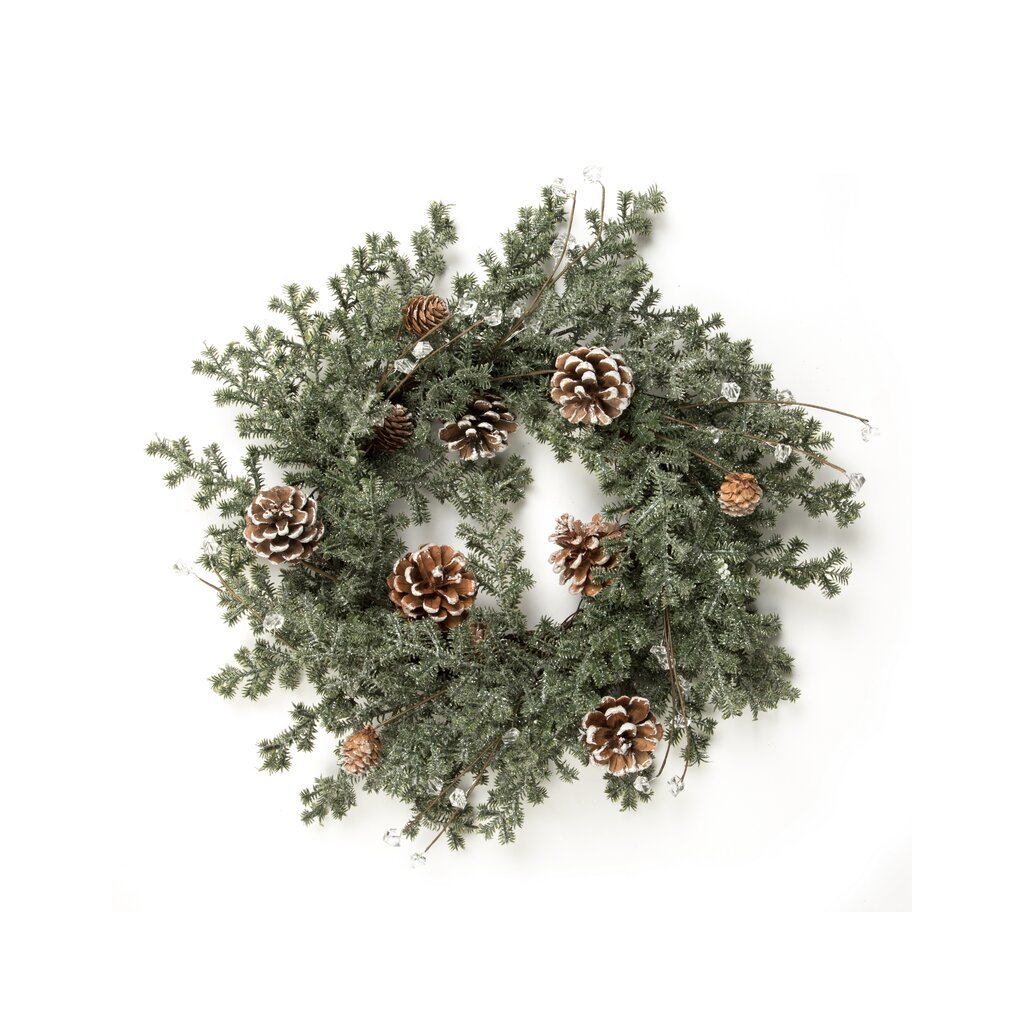 Karácsonyi díszes koszorú. Szín: zöld, Anyag: műanyag, Méret: Ø 40 cm
