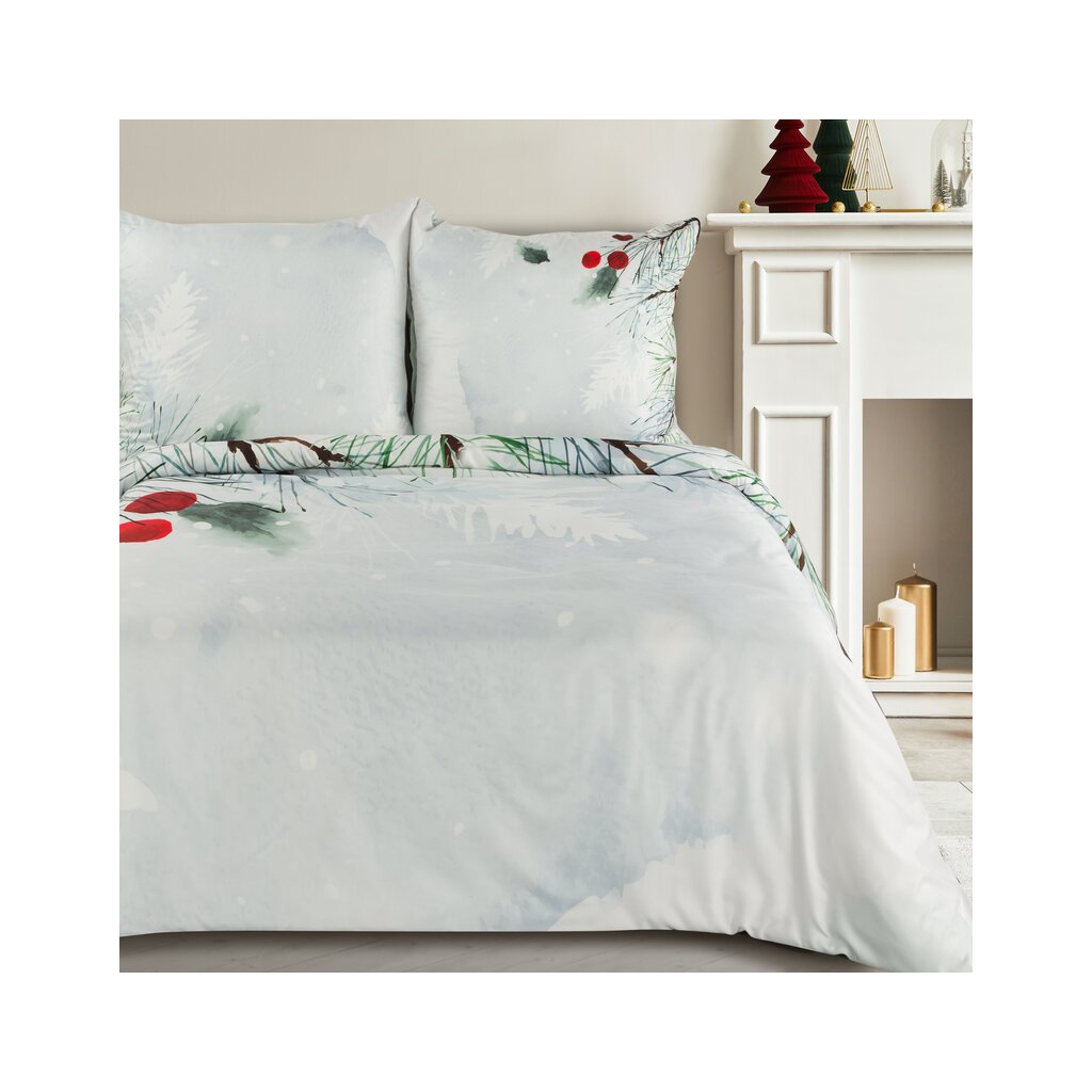 Karácsonyi lepedők franciaágyhoz ROBIN | szürke/türkiz 160 x 200 cm