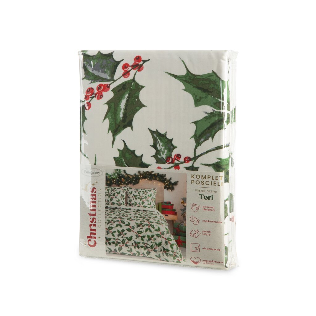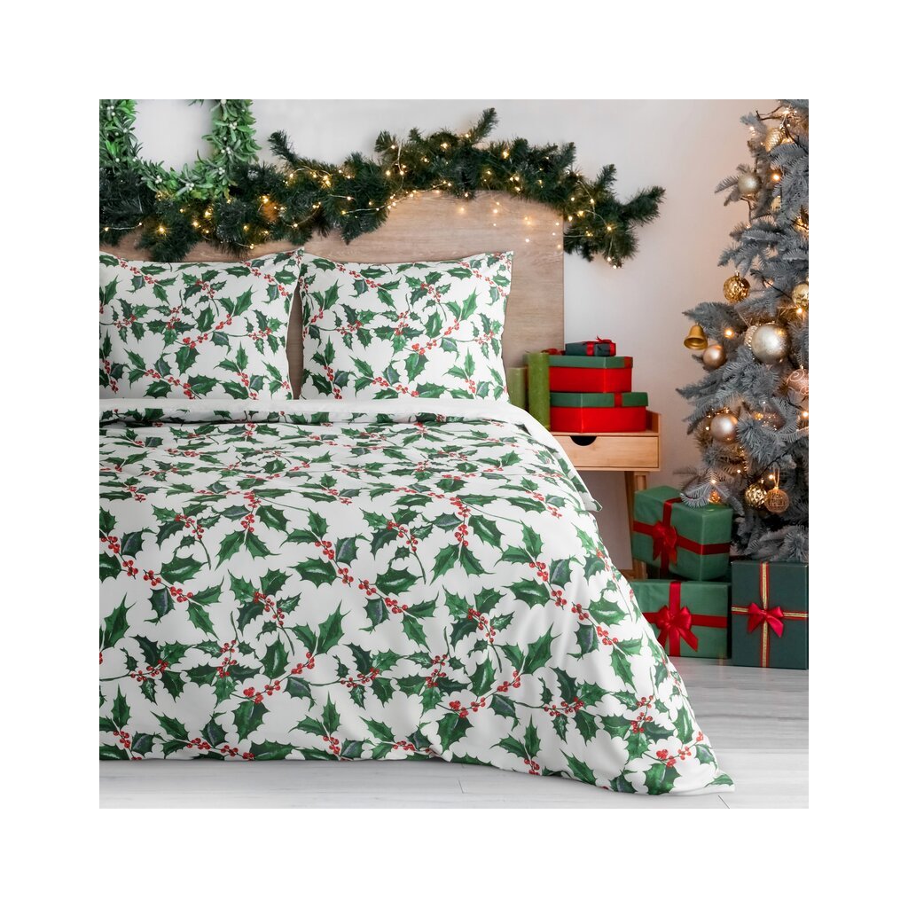 Karácsonyi lepedők franciaágyhoz TORI | fehér/zöld 160 x 200 cm