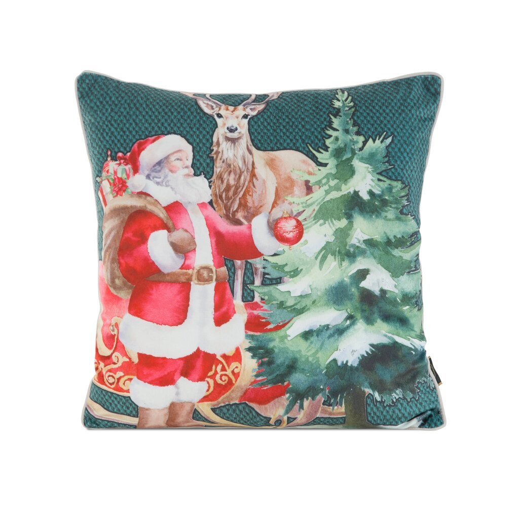 Bársony díszpárnahuzat karácsonyi mintával, szélesség: 45 cm, hossz: 45 cm, szín: sötétzöld, súly: 200 GSM, összetétel: Anyaga: 100% poliészter