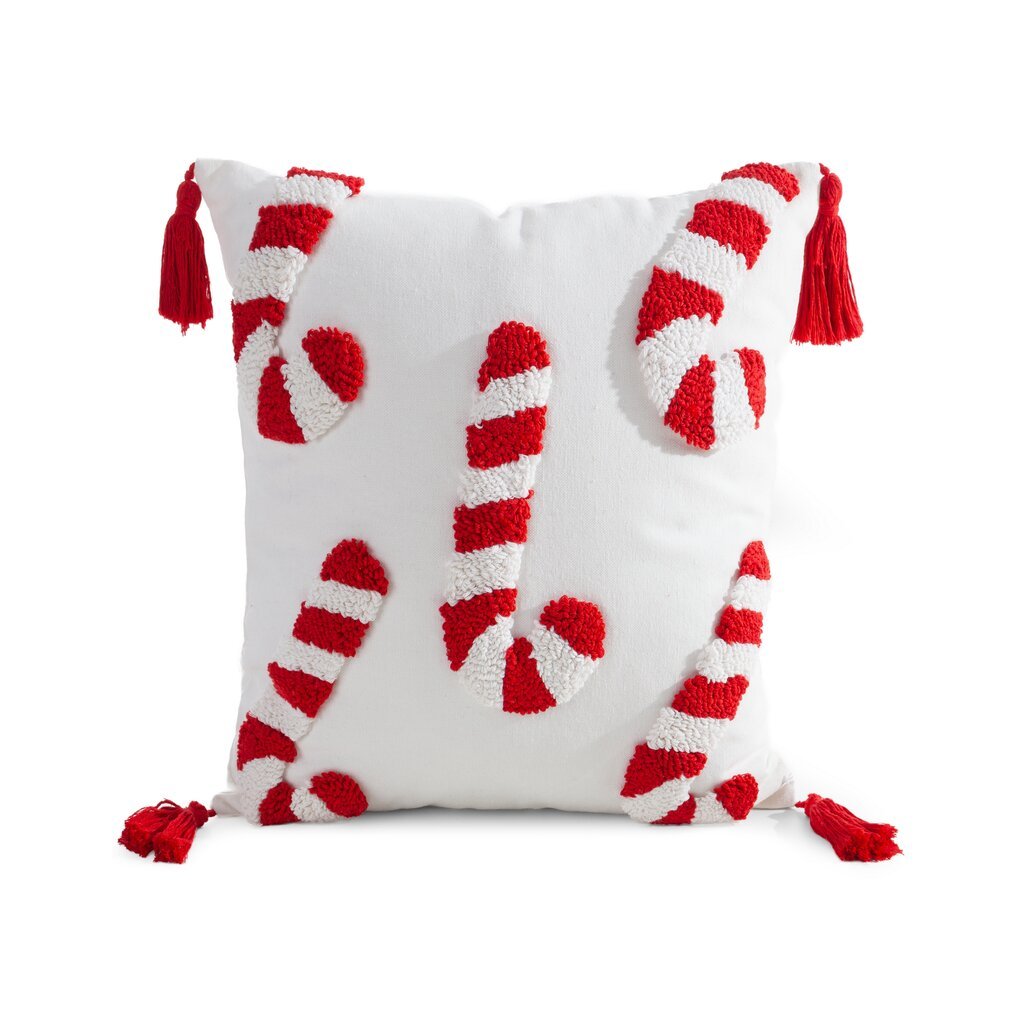 Karácsonyi díszes párnahuzat applikációval és pomponokkal. Szélesség: 45 cm, hosszúság: 45 cm, szín: fehér, súly: 270 GSM, összetétel: Anyag: 65% poliészter, 35% pamut