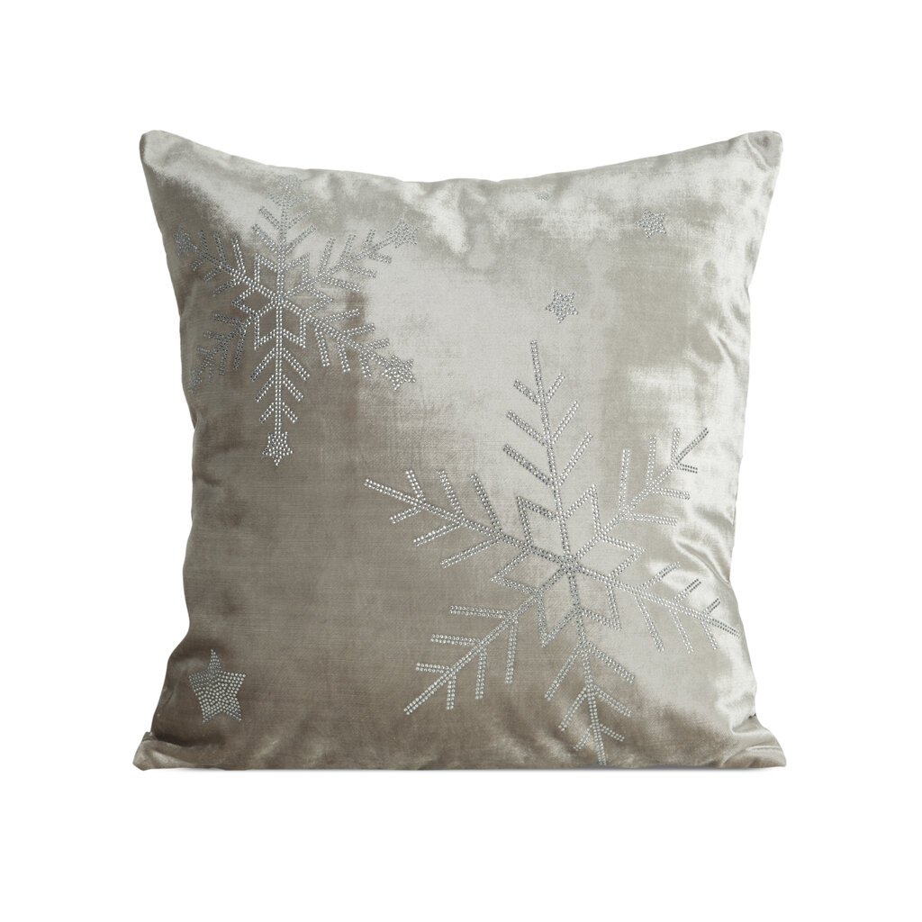 Karácsonyi díszpárnahuzat csillámos mintával és díszes szegéllyel. Szélesség: 45 cm, Hosszúság: 45 cm, Szín: Bézs, Súly: 430 GSM, Összetétel: Anyag: 100% poliészter