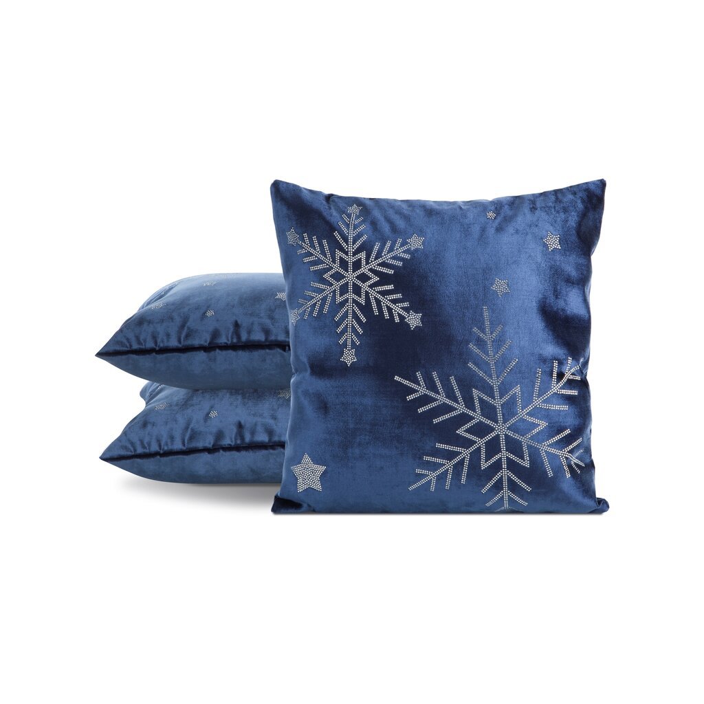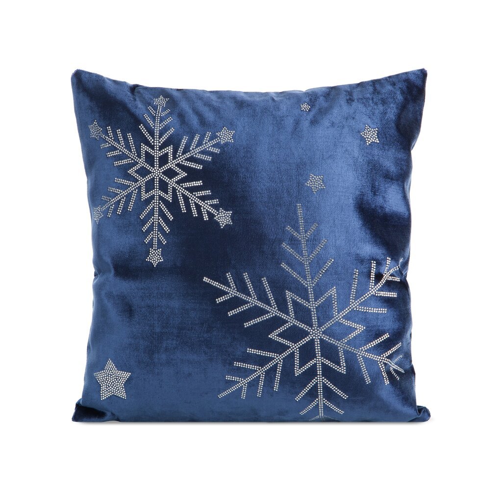 Karácsonyi díszpárnahuzat csillámos mintával és díszes szegéllyel. Szélesség: 45 cm, Hosszúság: 45 cm, Szín: Kék, Súly: 430 GSM, Összetétel: Anyag: 100% poliészter