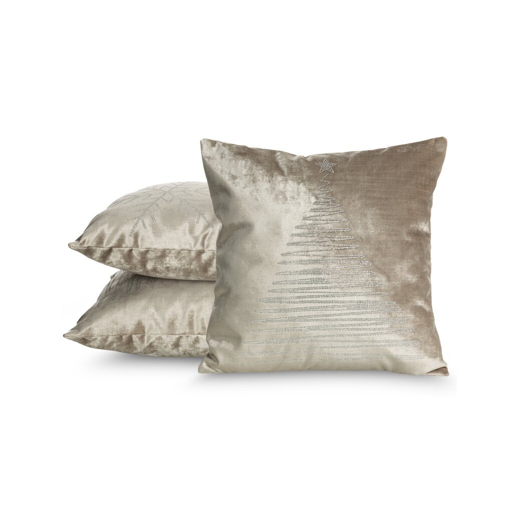 Karácsonyi díszpárnahuzat csillámos mintával és díszes szegéllyel. Szélesség: 45 cm, Hosszúság: 45 cm, Szín: Bézs, Súly: 430 GSM, Összetétel: Anyag: 100% poliészter