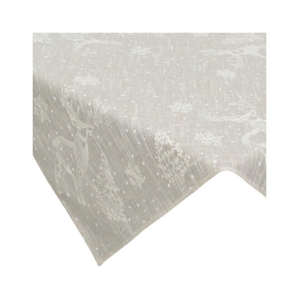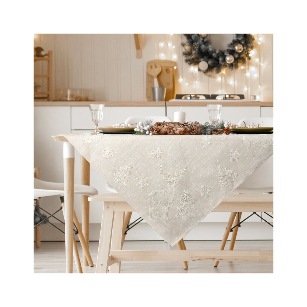 Karácsonyi díszes terítő. Szélesség: 85 cm, Hosszúság: 85 cm, Szín: Bézs, Súly: 200 GSM, Összetétel: Összetétel: 80% poliészter, 20% lenvászon