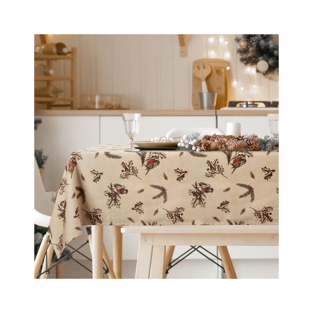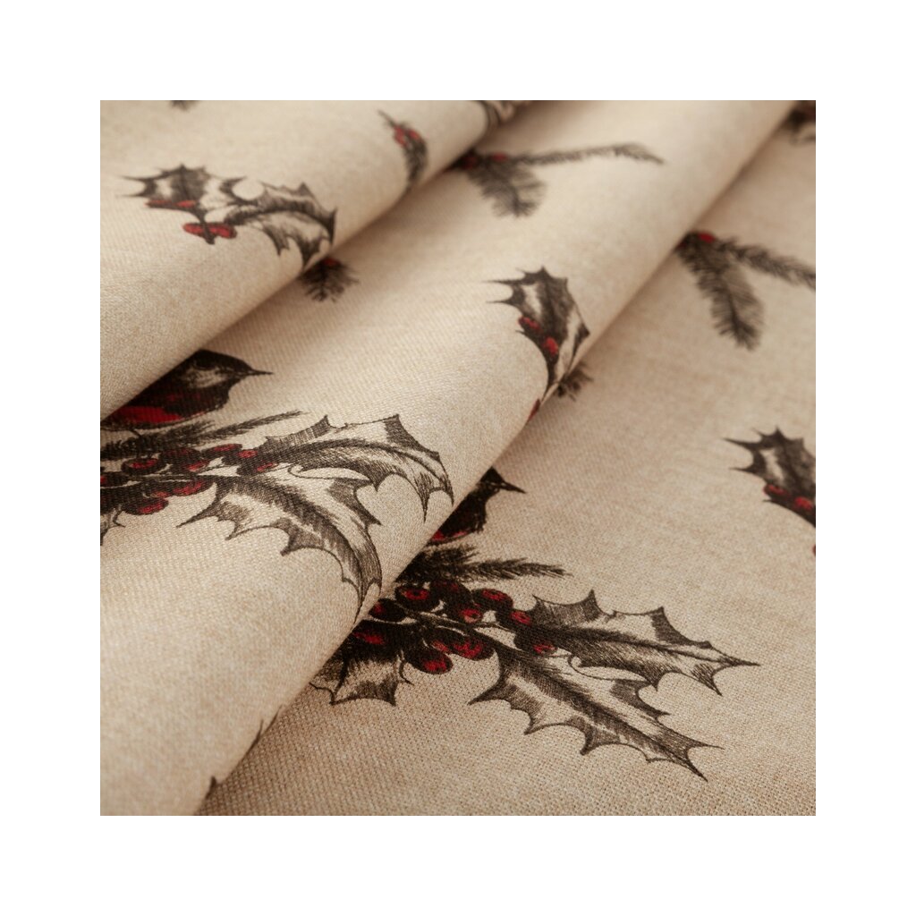 Karácsonyi terítő. Szélesség: 140 cm, Hosszúság: 200 cm, Szín: Bézs, Súly: 185 GSM, Összetétel: Anyag: 100% pamut