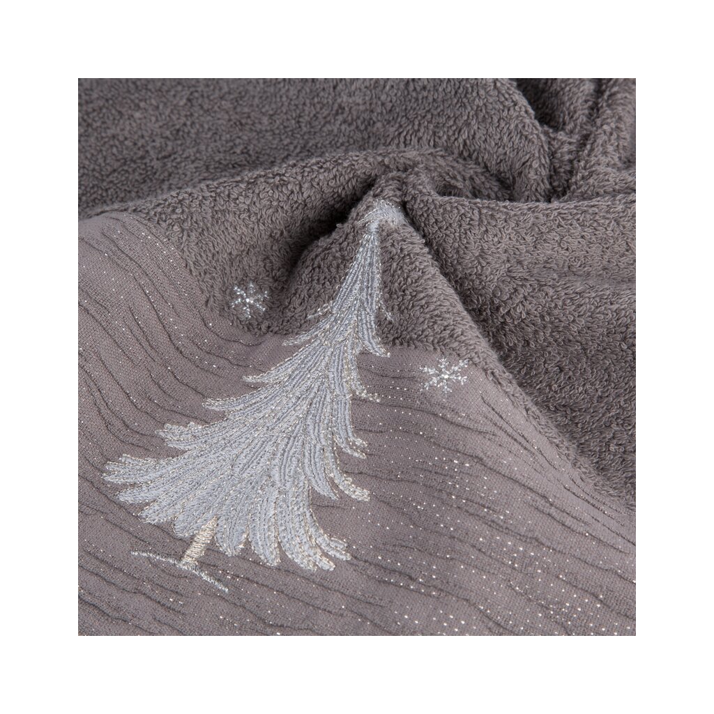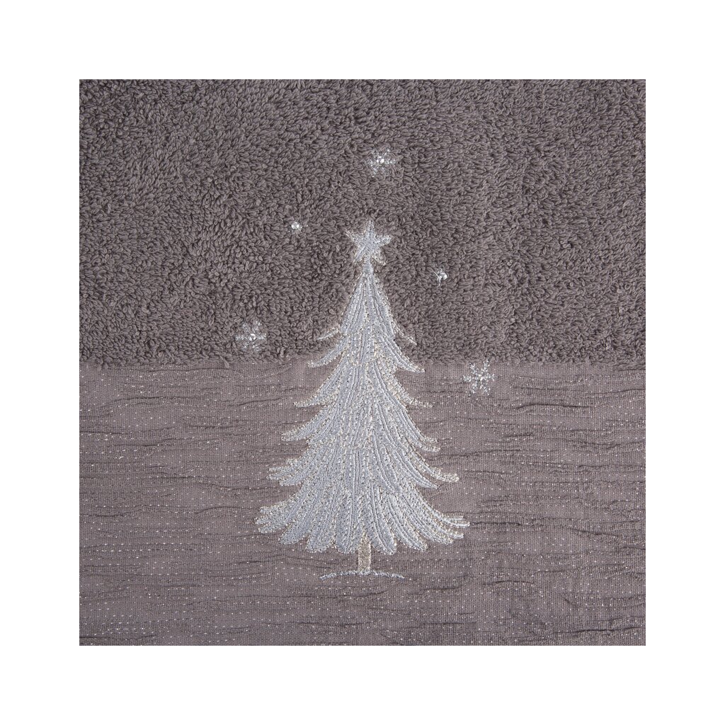 Karácsonyi törölköző hímzéssel díszített jacquard szegéllyel, szélesség: 70 cm, hossz: 140 cm, szín: acél, súly: 480 GSM, összetétel: Anyag: 100% pamut: díszítő rész: Anyag: 100% poliészter