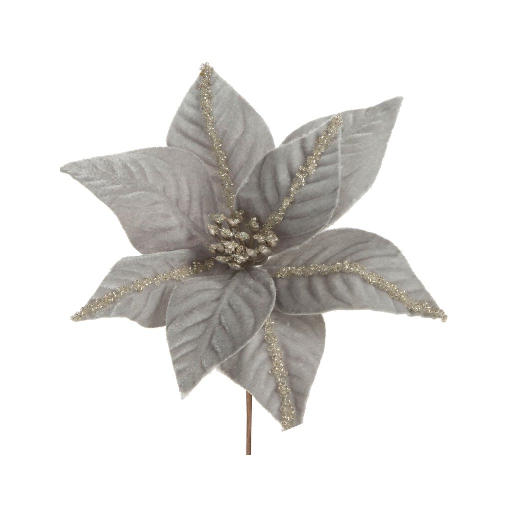 Karácsonyi díszvirág szélessége: fi 23 cm, hossza: 14 cm, színe: ezüst, összetétele: összetétele: 100% poliészter. Az ár 1 db-ra vonatkozik. A minimális rendelési mennyiség 12 db. Csak 12 többszöröse rendelhető pl. 12, 24 stb.