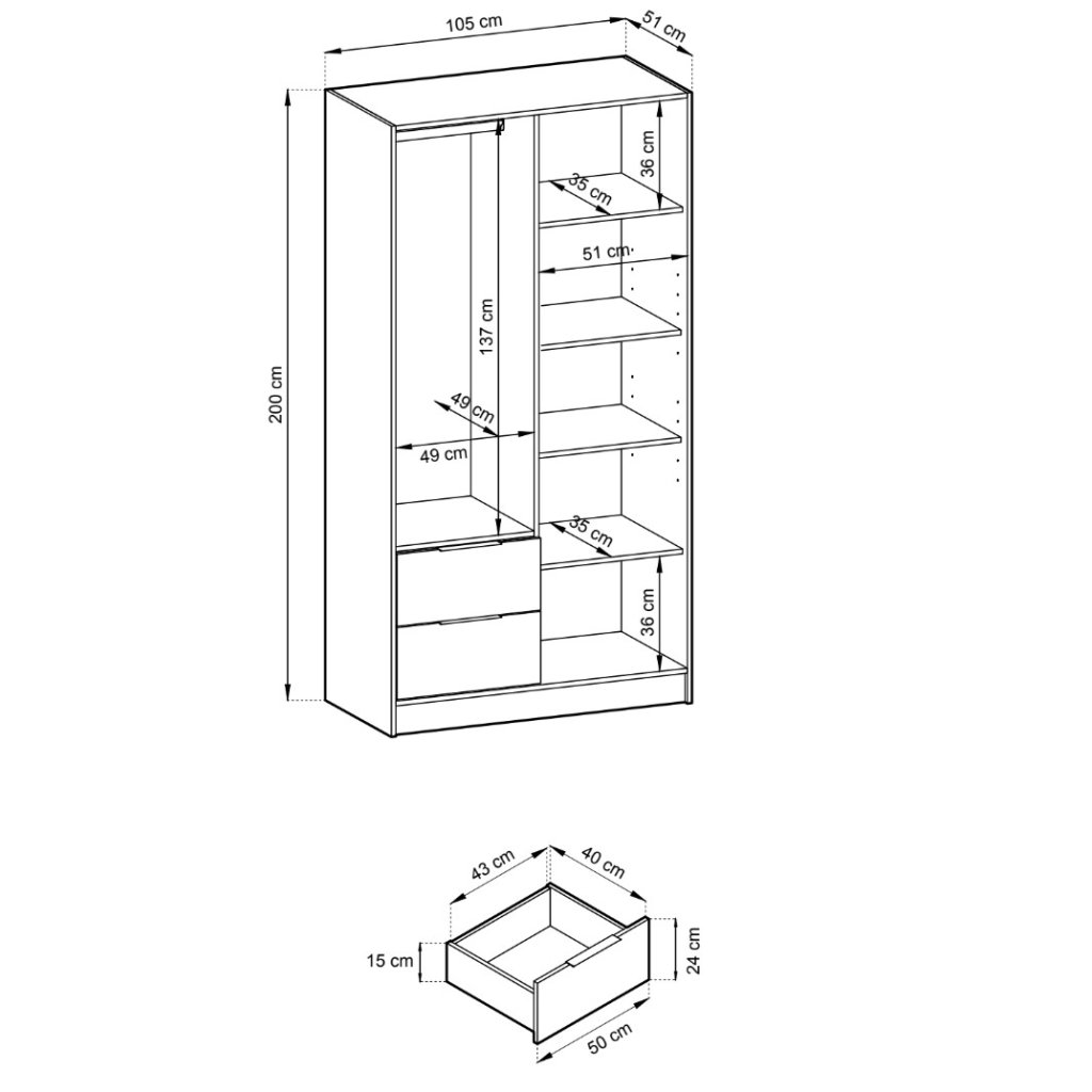 A modern és praktikus KELLY gardróbszekrények tökéletesen megtervezettek, mind praktikusság, mind megjelenés szempontjából. Az érdekes színkombinációknak köszönhetően könnyedén illeszkednek bármilyen modern enteriőrbe. A KELLY 2D gardróbszekrény két ajtóval és két fiókkal rendelkezik, a tükör optikailag megnöveli a szobát. Az ABS éleket a mindennapi használat során értékelni fogja. A léces gardróbszekrények nagyszerű befektetést jelentenek otthonában. Egyesítik a szépséget , az eleganciát és a funkcionalitást, hozzájárulva egy hangulatos és stílusos belső tér megteremtéséhez.