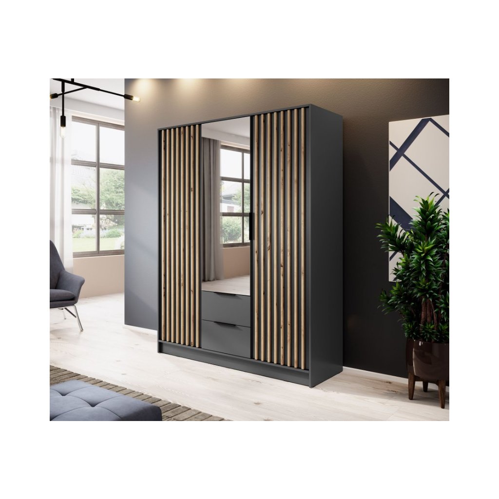 KELLY 3D ruhásszekrény tükörrel | grafit