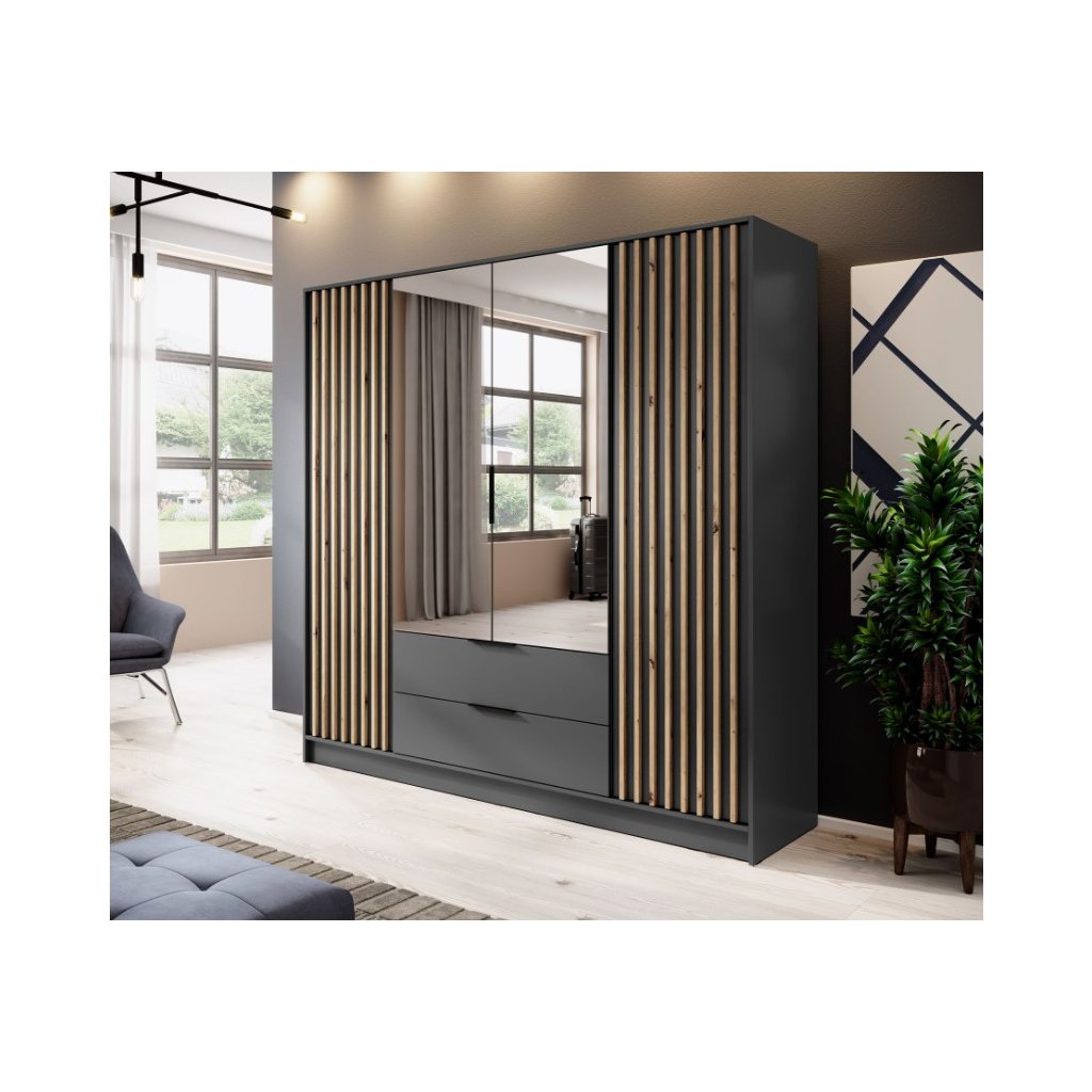 KELLY 4D ruhásszekrény tükörrel | grafit