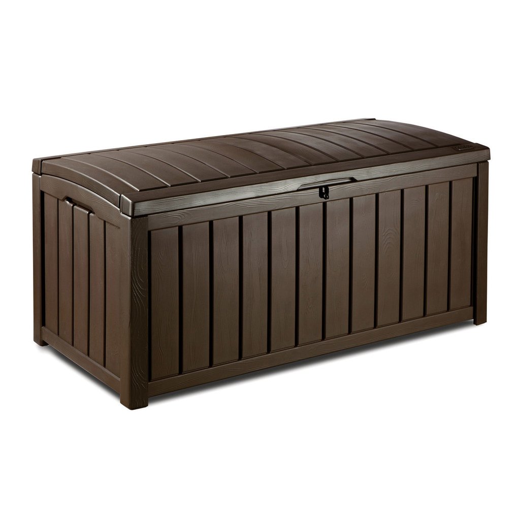 Nagyobb műanyag kerti GUTTERWOOD doboz 390L tárolóhellyel. A GUTTERWOOD doboz egy tárolódoboz, amely lehetővé teszi, hogy kényelmesen tároljon mindent, amit a kertben kéznél szeretne tartani. Nagy kapacitás jellemzi , aminek köszönhetően elfér benne például kerti szerszámok, párnák vagy takarók. Van egy doboz a könnyű használat és szállítás érdekében elülső és oldalsó fogantyúval felszerelt . A dobozban ülőhely is található.