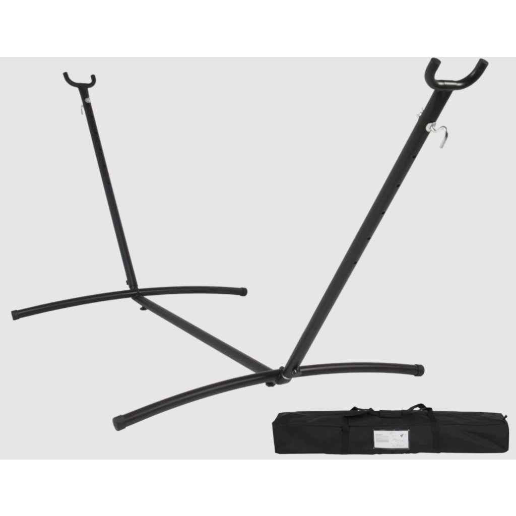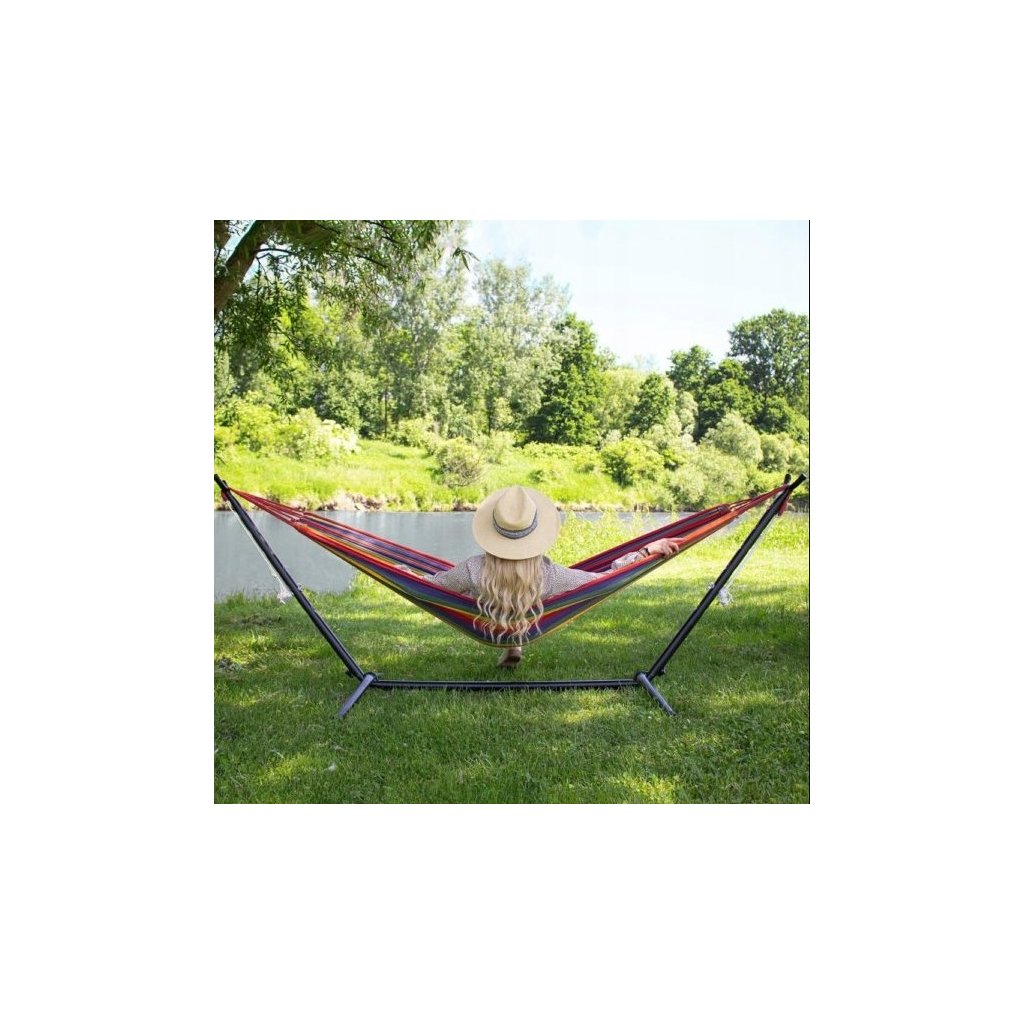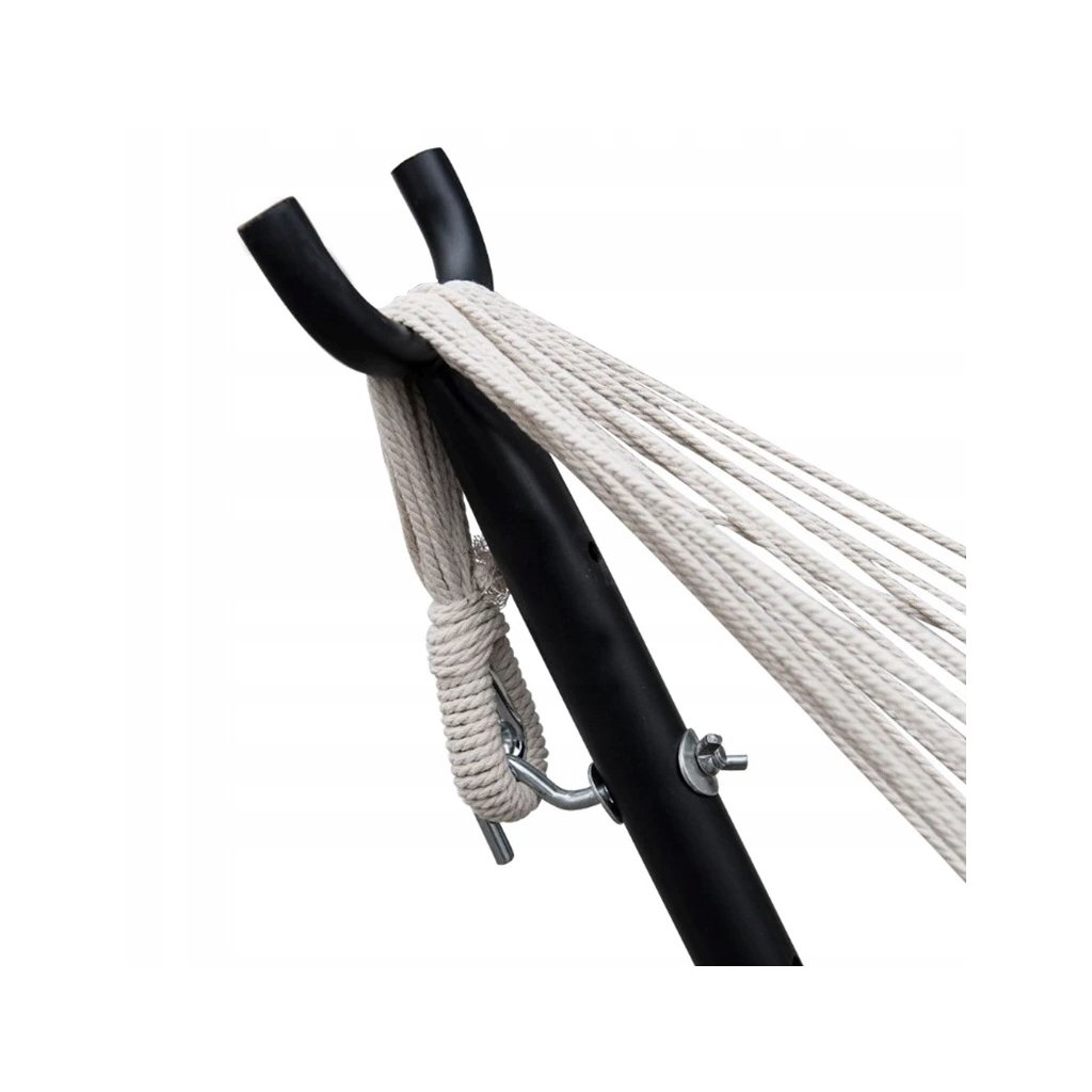 Kerti hálóállvány BOHO | 260 x 107 x 100 cm fekete színben. Nagyszerű kiegészítője a Egy függő függőágy , amely nagyszerűen mutat a kertben, a teraszon vagy az erkélyen. Élvezze a csendben és kényelemben eltöltött pihentető pillanatokat egy függő függőágyban, amely tökéletesen megfelel az elvárásainak.