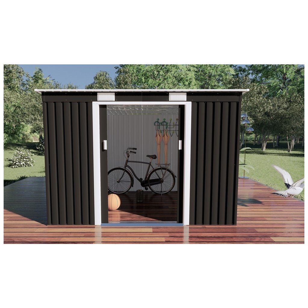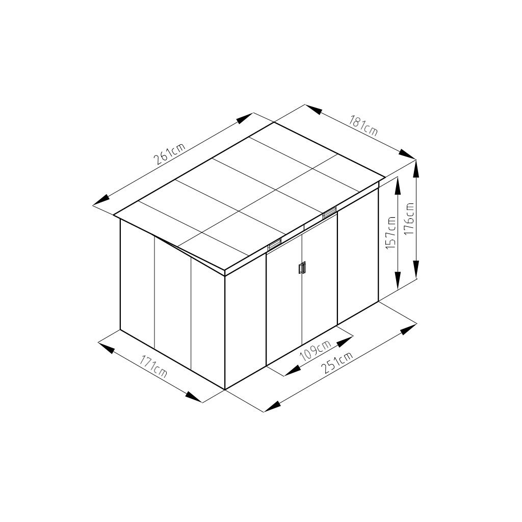 Az S2001C kerti fészer kerti szerszámok, kerékpárok, fűnyírók vagy medence kiegészítők tárolására használható. A modern kialakítású kerti fészer bármilyen kertbe illik. A fészer dupla tolóajtókkal rendelkezik, amelyek kényelmes hozzáférést biztosítanak. Kiváló minőségű, 0,25 mm vastag acéllemezekből készült, acél, horganyzott szerkezettel és szellőzőrácsokkal . A fészer padló nélkül kerül kiszállításra. Sík felületre (beton, járólap, fa padló) kell építeni. A házhoz tartozik egy keret, amelyet horgonycsavarokkal (a csomag tartalmazza) rögzíthet sík felületre. A tető maximális hóterhelése 60 kg/m².