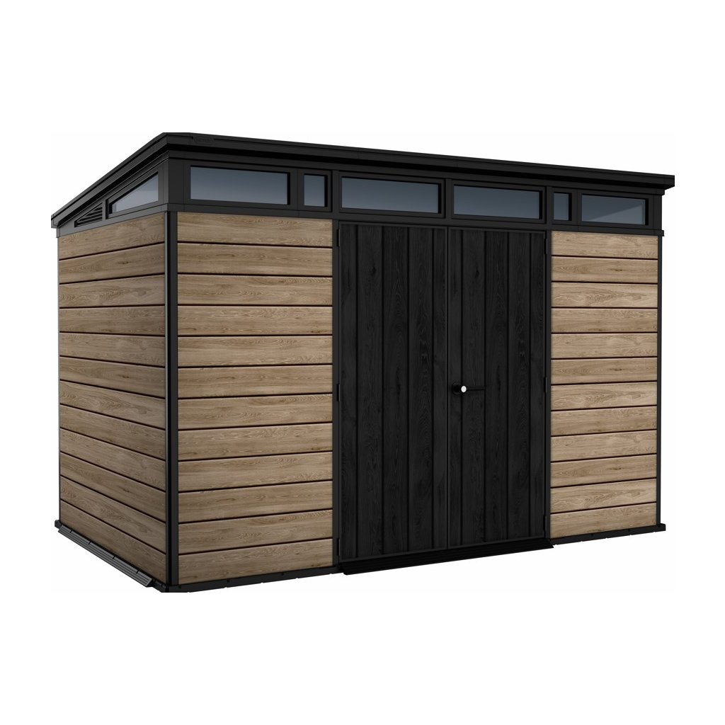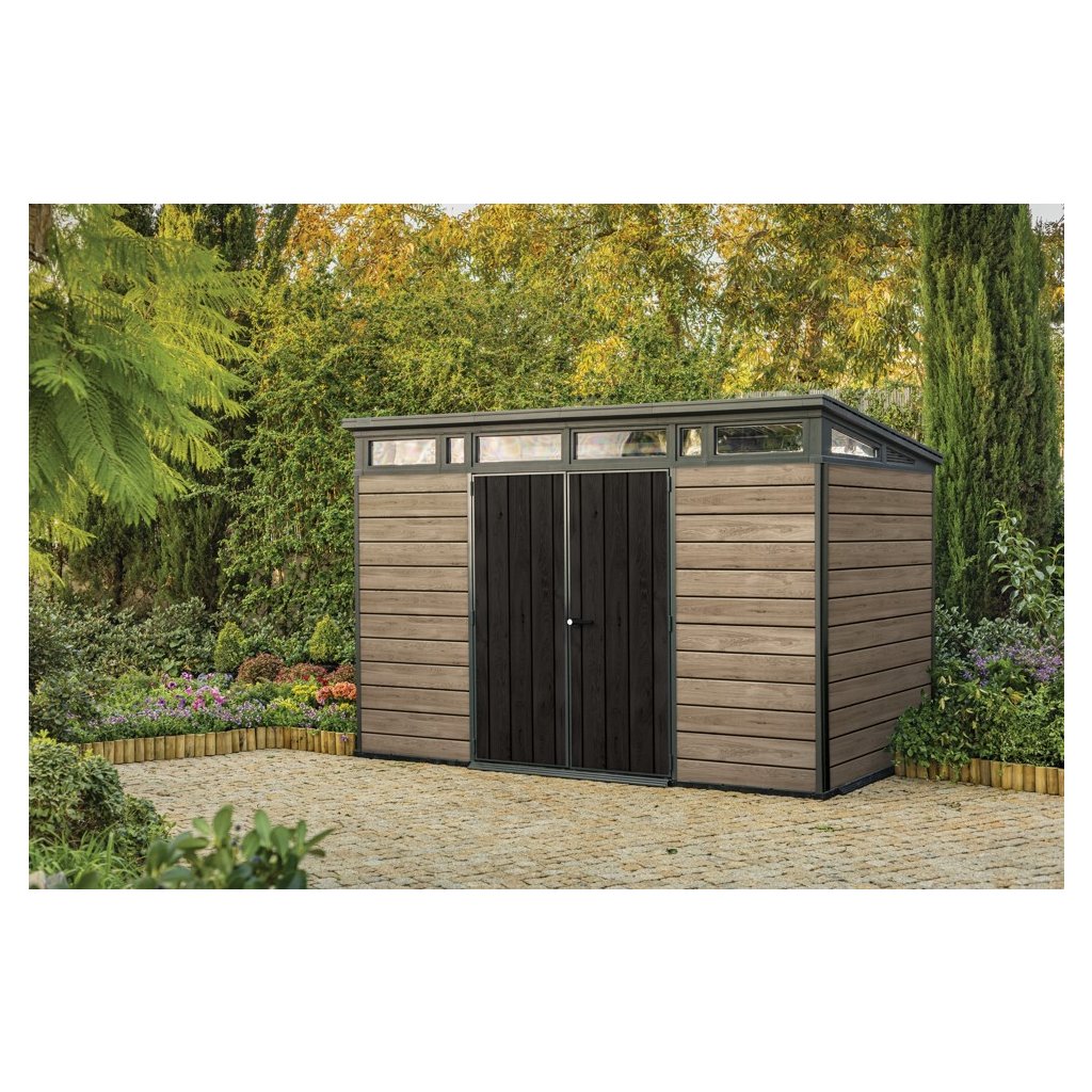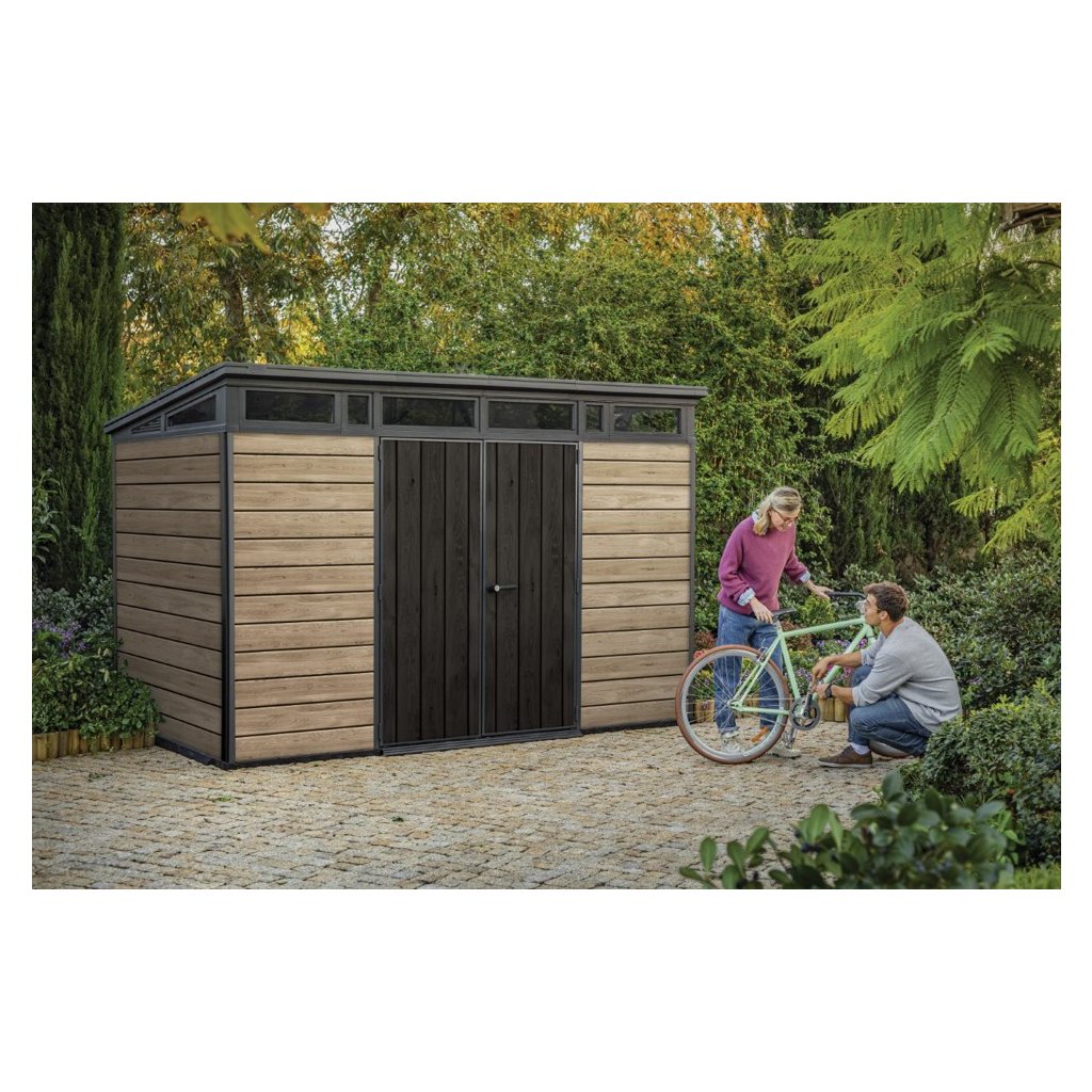 A karbantartásmentes CRAMP kerti fészer praktikus megoldást kínál kerti szerszámok, fűnyírók, kerékpárok vagy grillezőfelszerelések tárolására. A fészer széles, dupla ajtókkal van felszerelve a könnyű hozzáférés érdekében, magas és masszív mennyezettel, valamint rendkívül tartós padlóval . A masszív tető és az acélmerevítés hosszú élettartamot biztosít, míg a 3 pontos zárrendszerrel való zárás lehetősége magasabb szintű biztonságot nyújt (a lakat nem tartozék). Modern kialakításának köszönhetően ez a fészer ideális kiegészítője bármilyen kertnek. A polcok nem részei a kerti fészernek.