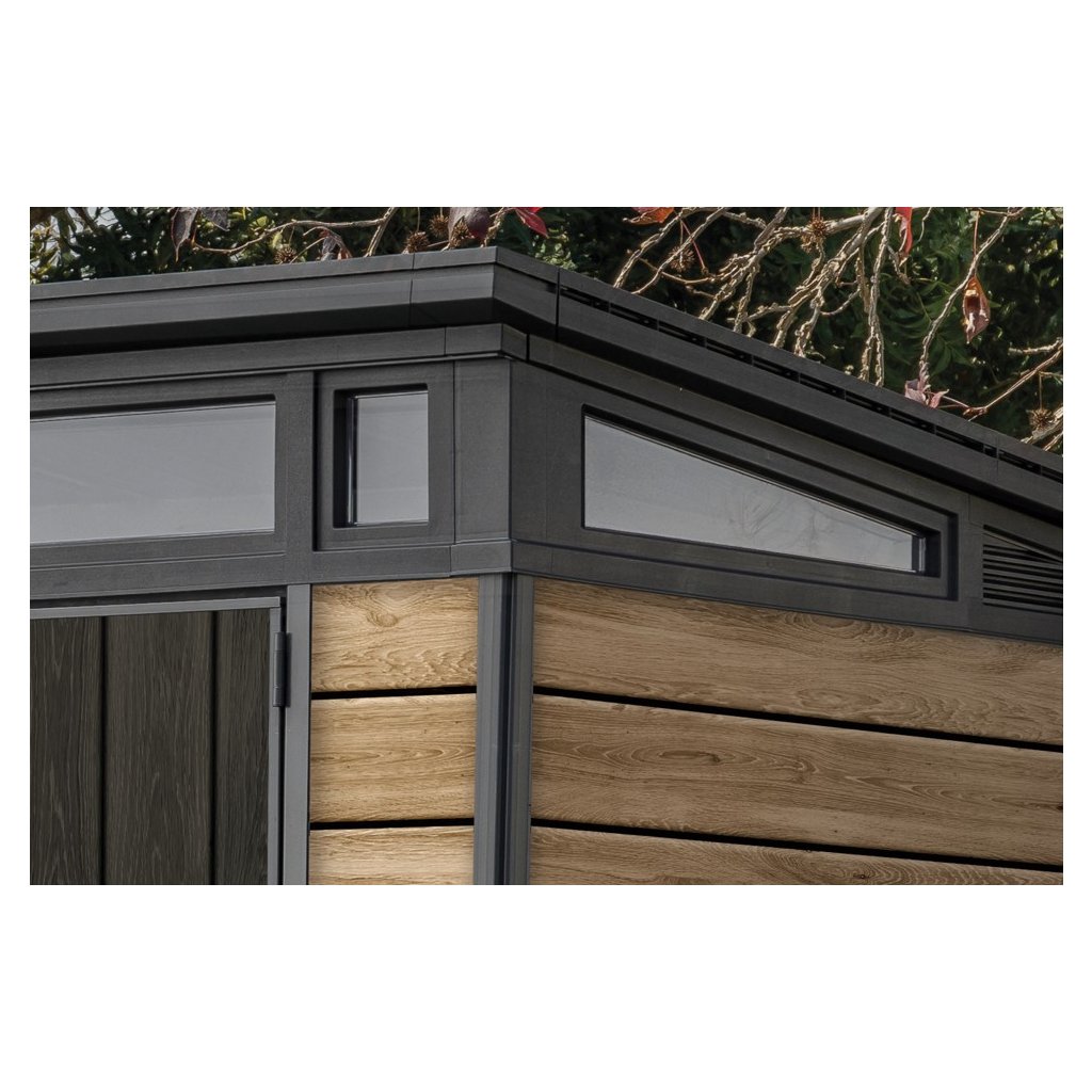 A ház az egyedülálló DecoCoat™ technológiával készült, így ez az innovatív anyag időjárásálló és karbantartásmentes, valamint nem rozsdásodik és nem hámlik. A tartós padlópanelek, a tető alatti minőségi szellőzés és a rengeteg természetes fényt biztosító tetőablakok hozzájárulnak egy kerti ház tökéletes benyomásához.