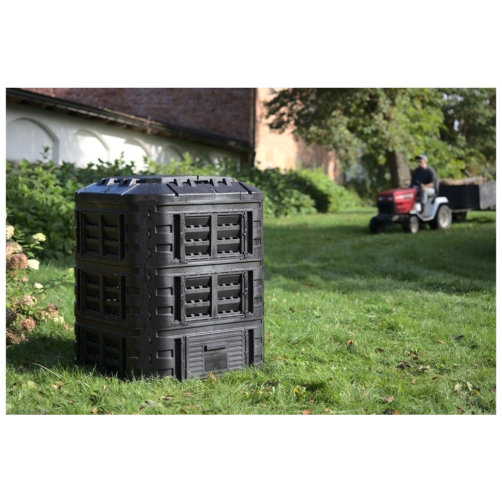 MODULAR műanyag kerti komposztáló 600 l űrtartalommal nagyon erős polipropilénből . A kialakítás biztosítja a levegő keringését és felgyorsítja a bomlási folyamatot. A termék tartalmaz egy fedelet és egy oldalajtót a komposzt könnyű eltávolításához. Az összeszerelés nagyon egyszerű , a CLICK rendszernek köszönhetően nincs szükség szerszámokra. Újrahasznosított anyagból készült.