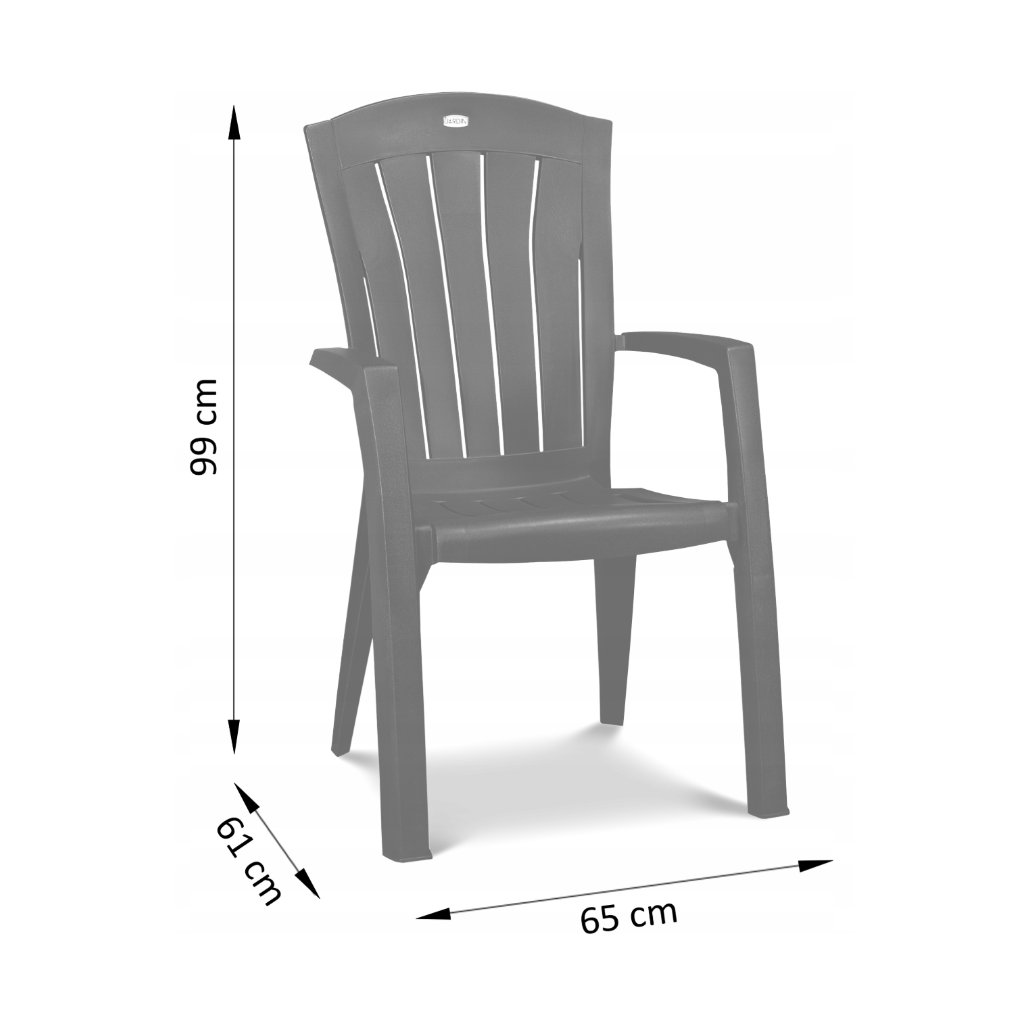 Pihenjen a kertben a STORINI kerti székekkel. A széles karfának köszönhetően kellő kényelmet nyújt. A szék könnyű és ugyanakkor nagyon stabil. Értékelni fogja az egyszerű karbantartást és egymásra rakhatóságot. Modern design STORINI székek megtalálja a helyét minden kertben vagy teraszon .
