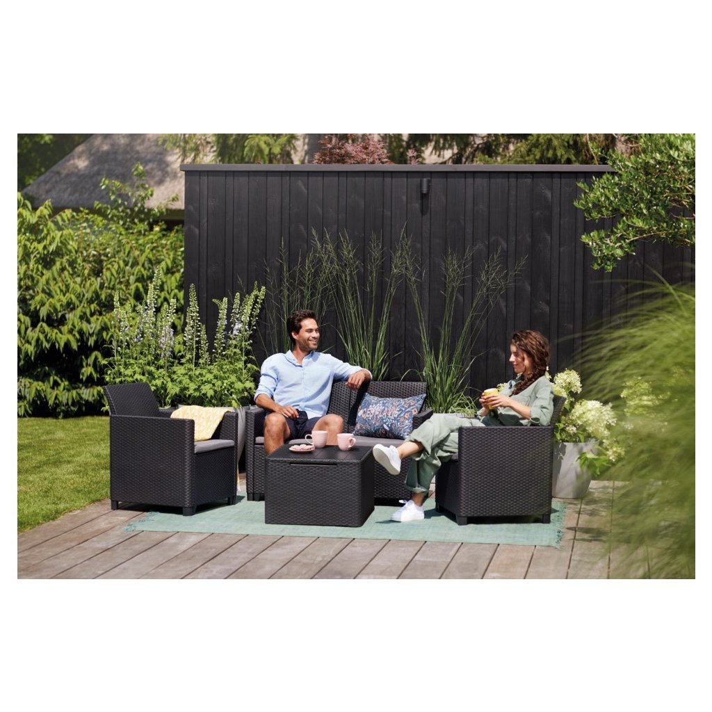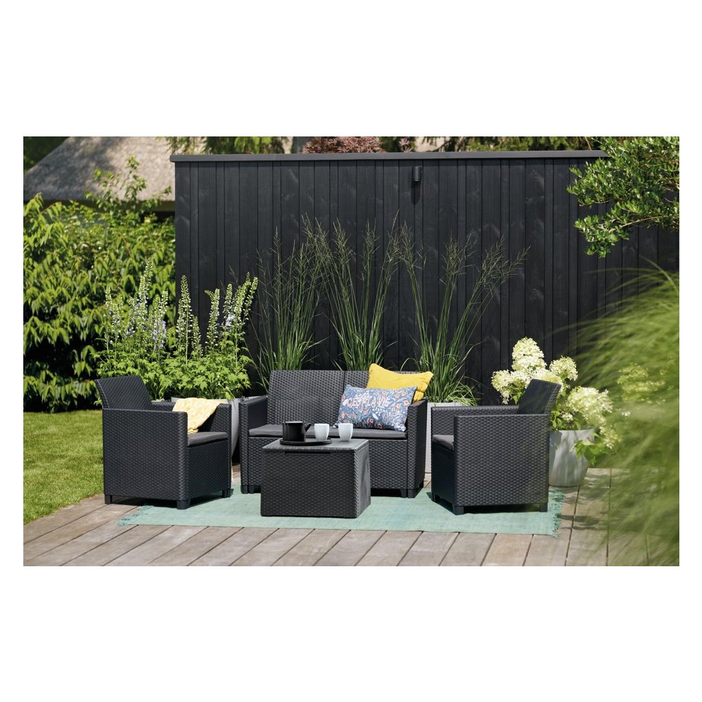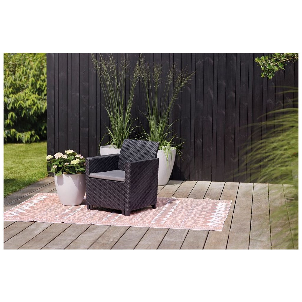 A kiváló minőségű öntött műanyag garantálja a bútorok hosszú élettartamát, ellenáll a kedvezőtlen időjárási viszonyoknak és az UV sugárzásnak . Víz és enyhe mosószer elegendő a karbantartásához.