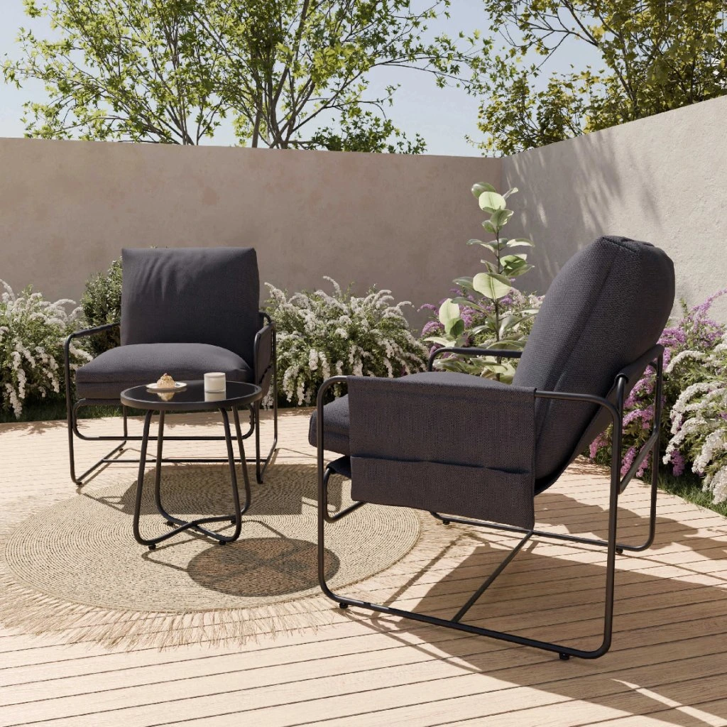 A NATTY kerti ülőgarnitúra ideális megoldás mindazok számára, akik modern és kényelmes szettet keresnek teraszukra, erkélyükre vagy kertjükbe. A minimalista dizájn, a kiváló minőségű anyagok és a praktikus asztal kombinációja tökéletes helyet teremt a kikapcsolódáshoz és egy csésze kávé vagy egy ital elfogyasztásához . A szett két kényelmes fotelből és egy kerek asztalból áll, amelyek együttesen harmonikus egészet alkotnak. A fotelek puha ülésekkel és elegáns szürke színű háttámlákkal vannak felszerelve , amelyek magas kényelmet biztosítanak. Ergonomikus formájuk biztosítja a kényelmet még hosszabb pihenés során is . A stabil fémszerkezet szilárdságot és modern ipari megjelenést kölcsönöz az egész szettnek. A praktikus tárolófelülettel ellátott kerek asztal ideális italok, könyvek vagy apró kiegészítők tárolására. Kompakt méreteinek köszönhetően a ülőgarnitúra kisebb helyiségekbe, például erkélyekre vagy kisebb teraszokra is alkalmas .