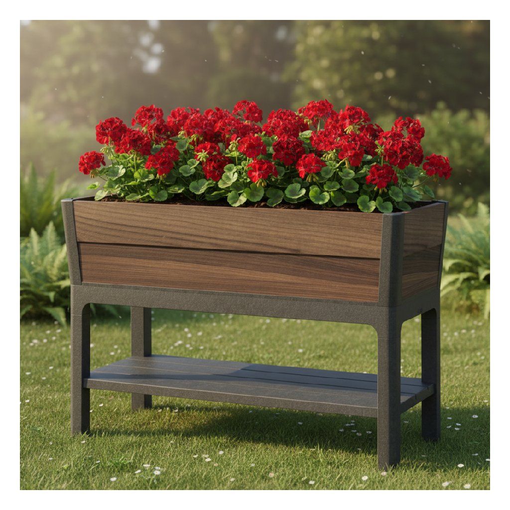 A DECO AGGRANDIZED / diófa kerti virágtartó modern és stílusos kiegészítője lehet bármely terasznak vagy erkélynek. A virágtartó a forradalmi DecoCoat anyagból készült, tökéletesen utánozza a fát , amely megkülönböztethetetlen a valódi fától. A megemelt ergonomikus kialakítás csökkenti a hajolgatás szükségességét, ami kíméli a hátat. A praktikus vízszintjelző leegyszerűsíti a növények gondozását és csökkenti a gyakori öntözés szükségességét. A leeresztő csap lehetővé teszi a felesleges víz manuális eltávolítását a víztartályból túlfolyás esetén.
