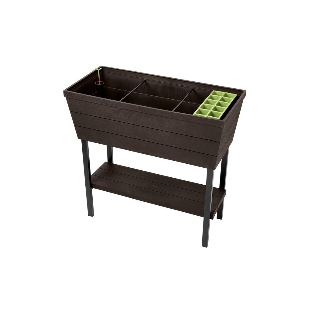 Az okos és stílusos CITY FLOWER ültető beépített öntözőrendszerrel megkönnyíti a növények termesztését. A vízszintjelző megakadályozza a túlzott nedvességfelvételt, a kis tárolóedények pedig megkönnyítik a palánták rendszerezését. További előny a polc, amelyre a szükséges kerti kiegészítőket helyezheti.