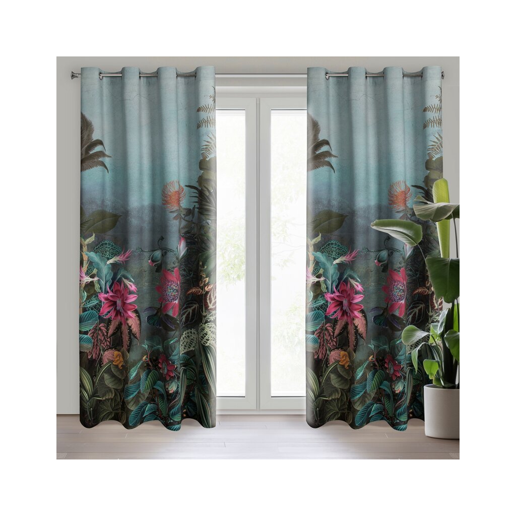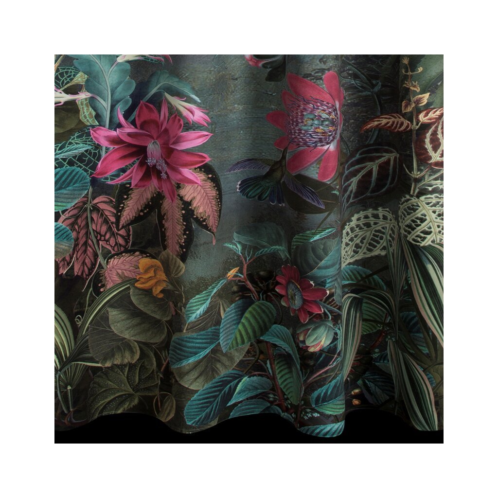 Kész bársonyfüggöny botanikai motívummal, szélesség: 140 cm, hossz: 250 cm, szín: sötétzöld, súly: 200 GSM, összetétel: Anyaga: 100% poliészter