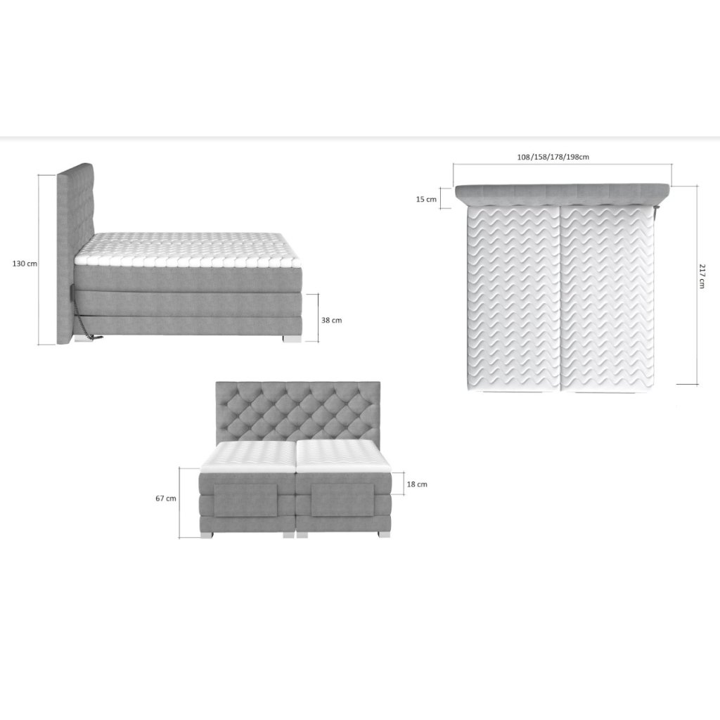 Az ellenállhatatlan BOXSPRING ágy kiváló minőségű anyagokból készült. A CLOVER dupla állítható ágy képes a matracok magasságának, valamint a fej- és lábmagasságnak az állítására. Az ágy mindkét oldalán található két távirányítónak köszönhetően minden matracot külön-külön is beállíthat. A CLOVER ágy három különálló matraccal van felszerelve, amelyek együttesen tágas alvóhelyet hoznak létre magasan a padló felett, ami megkönnyíti a mindennapi felkelést. A gyönyörűen steppelt fejtámla véd a falak hidegétől, és nagyon esztétikusnak tűnik.