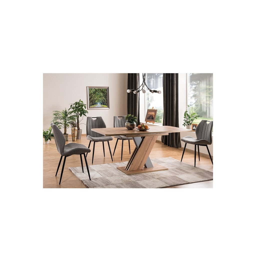 Az EXEL étkezőasztal a tökéletes választás minden modern háztartás számára, amely a dizájner darabokat kedveli. Az EXEL étkezőasztal laminált forgácslapból készült, aminek köszönhetően az asztal összhatása egyszerűen ellenállhatatlan. Az asztal bármilyen modern étkezőbe vagy konyhába illik. Ez a praktikus , kihúzható étkezőasztal 8 fő befogadására alkalmas.
