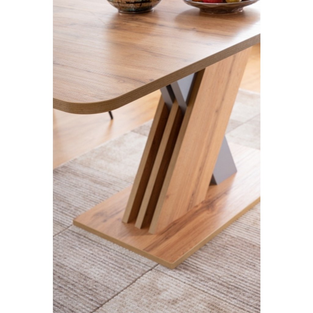 Az étkezőasztal kiváló minőségű anyagból készült, amely ellenáll a sérüléseknek, a nedvességnek és a magas hőmérsékletnek. Az anyag könnyen karbantartható is, csak egy ruhával kell áttörölni.
