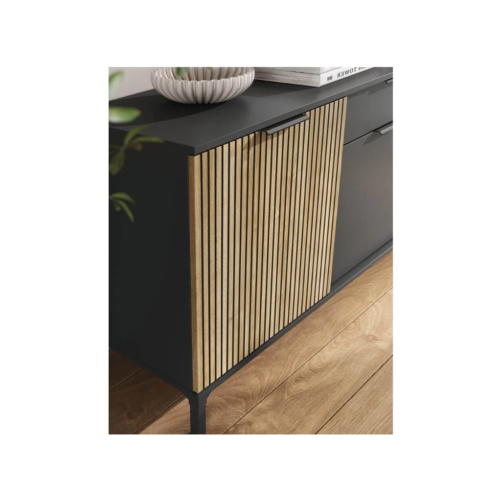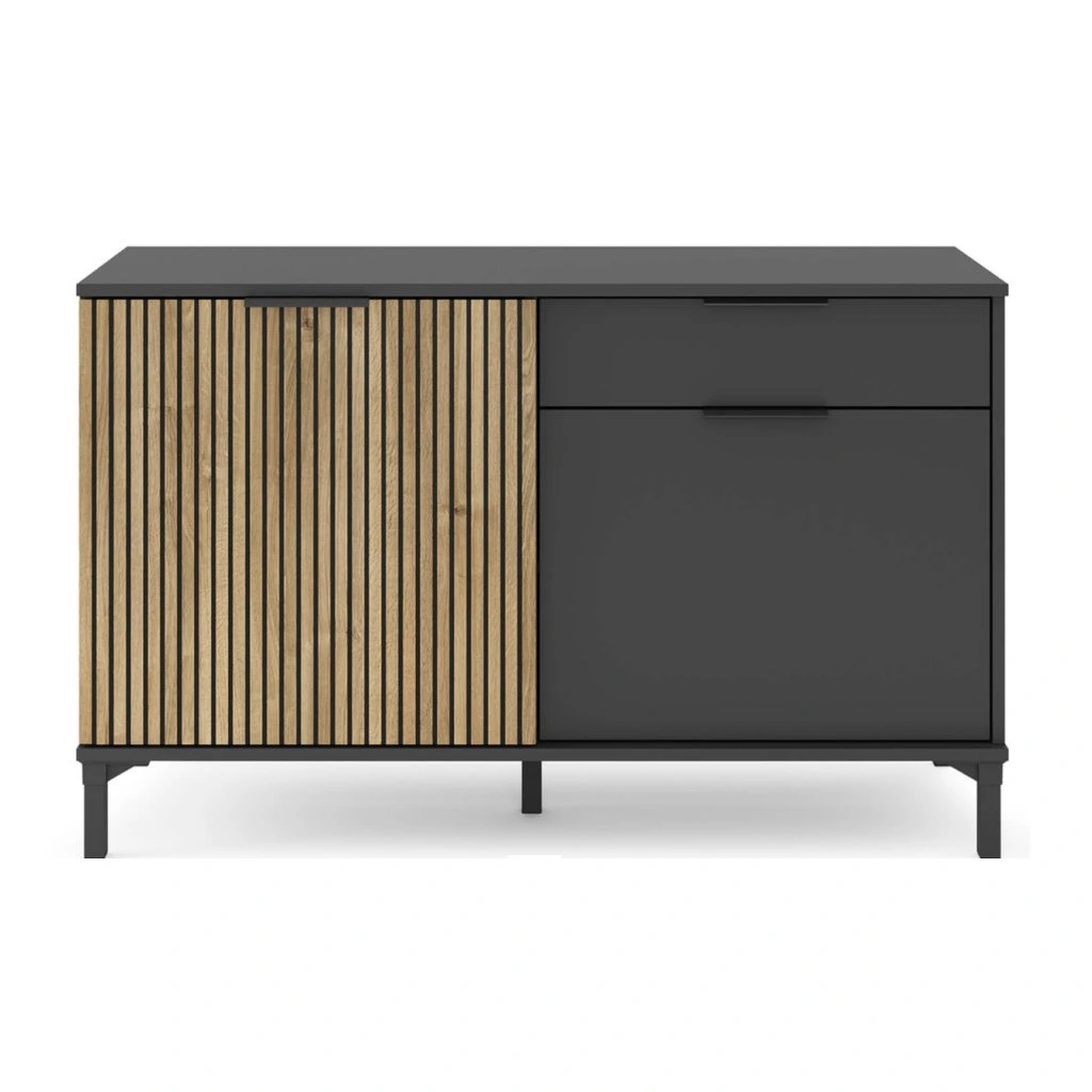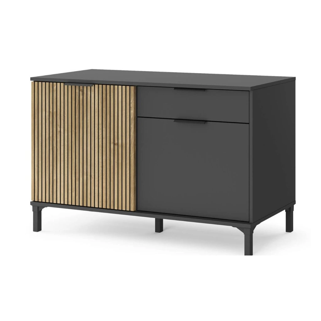 A KIOTO 02 fiókos szekrény egy funkcionális bútordarab modern, rendezett dizájnnal , amely tökéletes nappaliba, étkezőbe vagy dolgozószobába. Az egyszerű forma ötvözi az esztétikát a praktikus tárolóhely-hozzáféréssel , és helyet kínál nagyobb berendezéseknek és apró kiegészítőknek. A széles tetej további tárolóhelyként is szolgálhat. A fiókos szekrény lehetővé teszi a belső tér világos felosztását . Az ajtók mögött két polc található, amelyek alkalmasak edények, textíliák, dokumentumok vagy egyéb háztartási cikkek tárolására. A fiók praktikus olyan apró tárgyak számára , amelyeket mindig kéznél szeretne tartani, és segít fenntartani a rendet a mindennapi használat során.