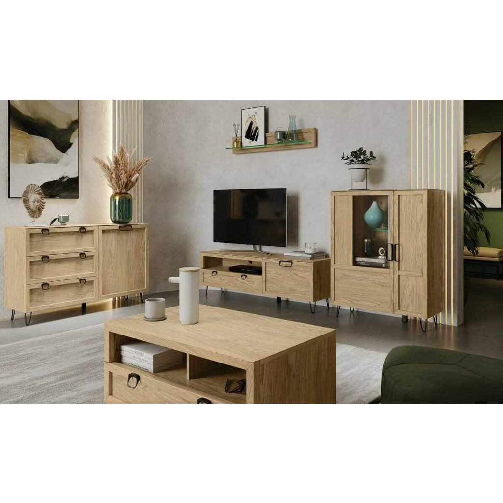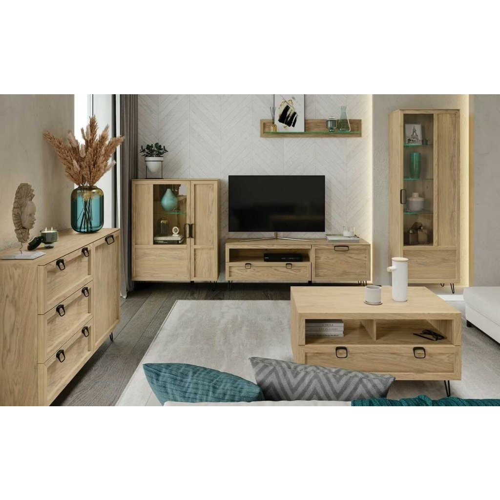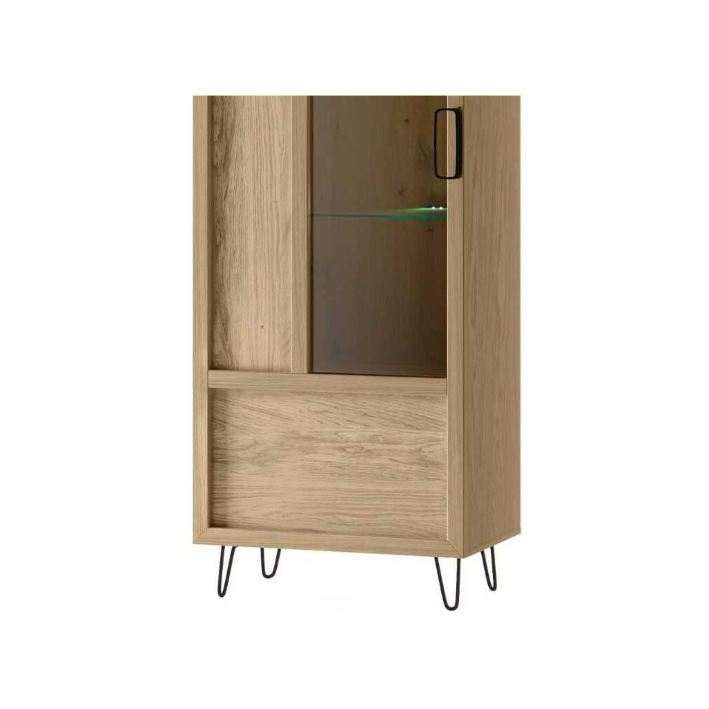 A LIMBO nappali bútor kollekcióval megtalálja a megfelelő egyensúlyt a funkcionalitás, a stílus és az eredetiség között. A LIMBO 10 vitrin egy részben üvegezett ajtóval rendelkezik, LED polcvilágítással. A kollekció ötvözi a természetes elemet a modern dizájnnal , a fa melegét a hideg fémmel. A tömör tölgyfa természetes furnérral és fém lábakkal és fogantyúkkal kombinálva harmonikus egészet alkot. A bútor össze van szerelve.