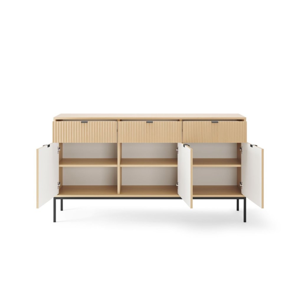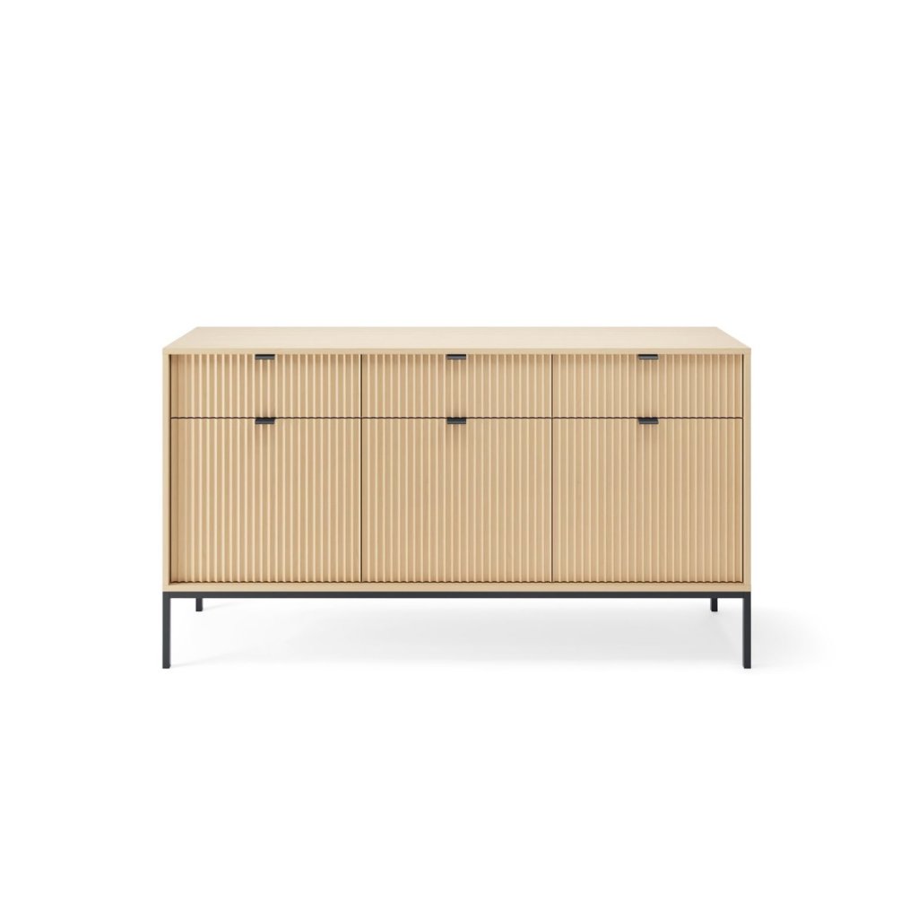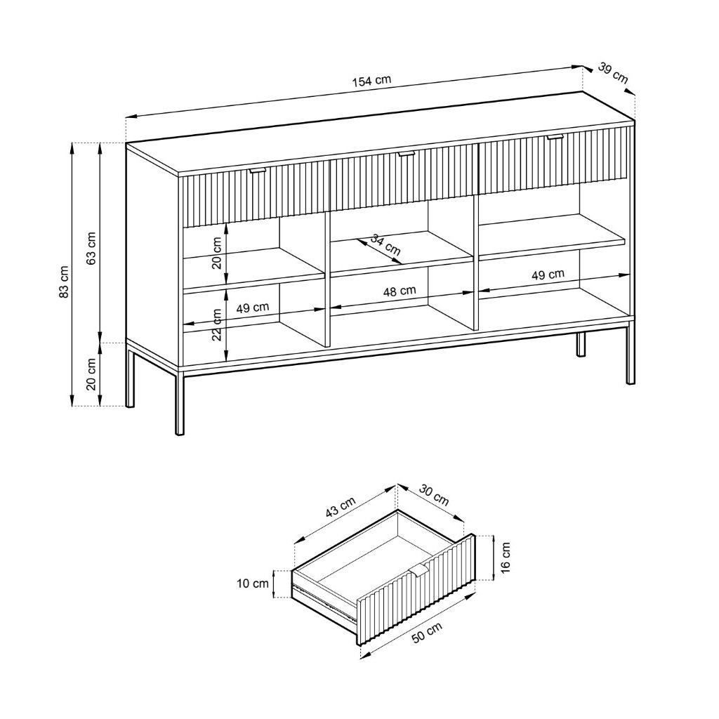 A MONA KSZ-154 fiókos szekrény 16 mm-es laminált lapból készült, az ajtók pedig 18 mm-es MDF-ből. A fiókos szekrényt visszafogott, arany színű fogantyúk teszik teljessé. Lenyűgöző kontrasztot alkotnak a porszórt acélból készült fekete lábak . A bútor ABS élekkel rendelkezik . Tisztítása egyszerű és gyors - csak használjon nedves ruhát vagy megfelelő bútortisztítót.