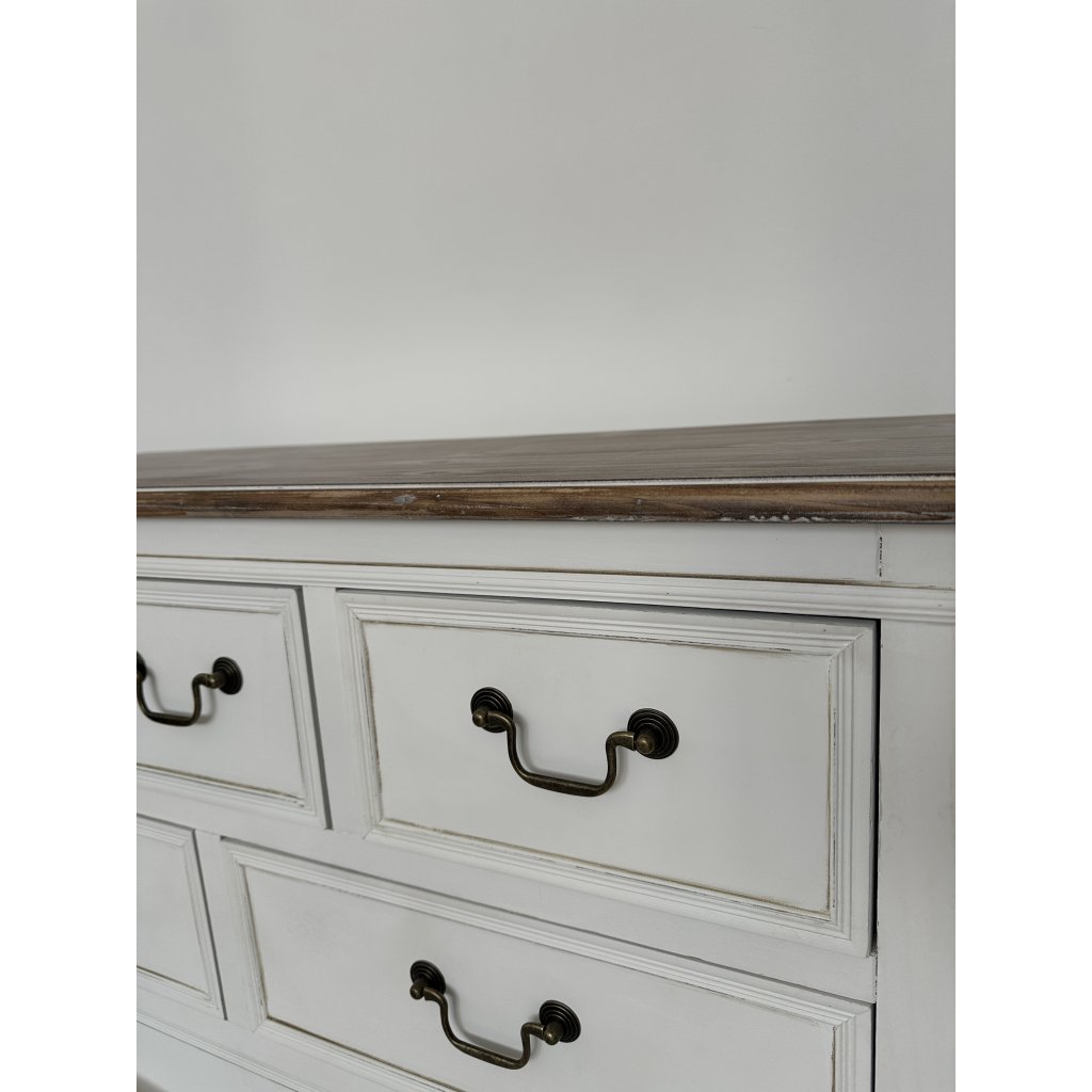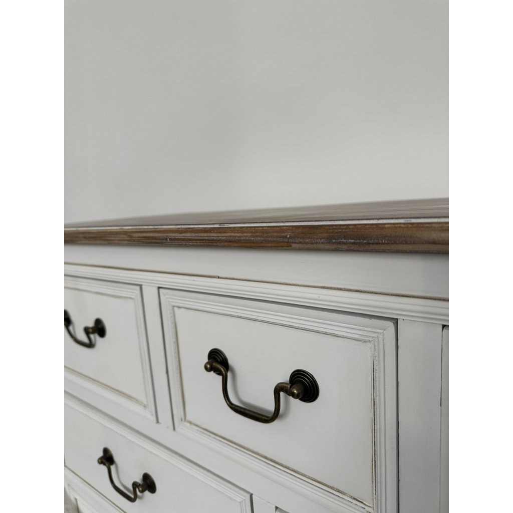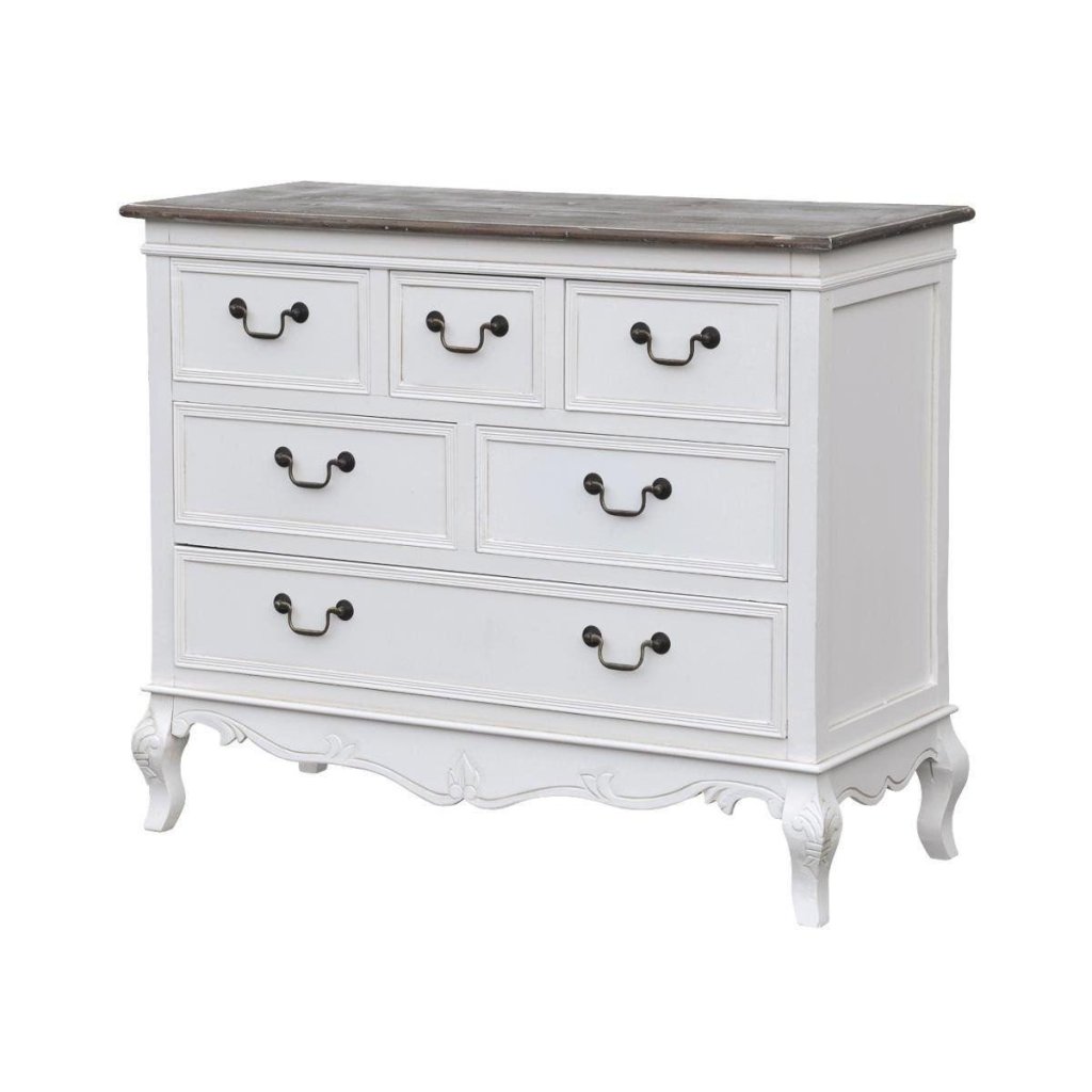 A Rimini RI024 komód egy gyönyörű provence-i stílusú bútordarab, amely azonnal eleganciát és bájt visz otthonába. Ez a modell hat tágas fiókkal van felszerelve, amelyek bőséges tárolóhelyet biztosítanak minden igényhez. Minden fiókot érdekes fém fogantyúk díszítenek, amelyek nemcsak esztétikai értékkel bírnak a komódban, hanem könnyű nyitást és zárást is biztosítanak. A komód érdekesen faragott lábakon áll, amelyek könnyedséget kölcsönöznek neki és növelik a stabilitását. A kellemes világosbarna színű teteje tökéletesen illik a komód krémszínéhez. A bútort összeszerelve szállítjuk.