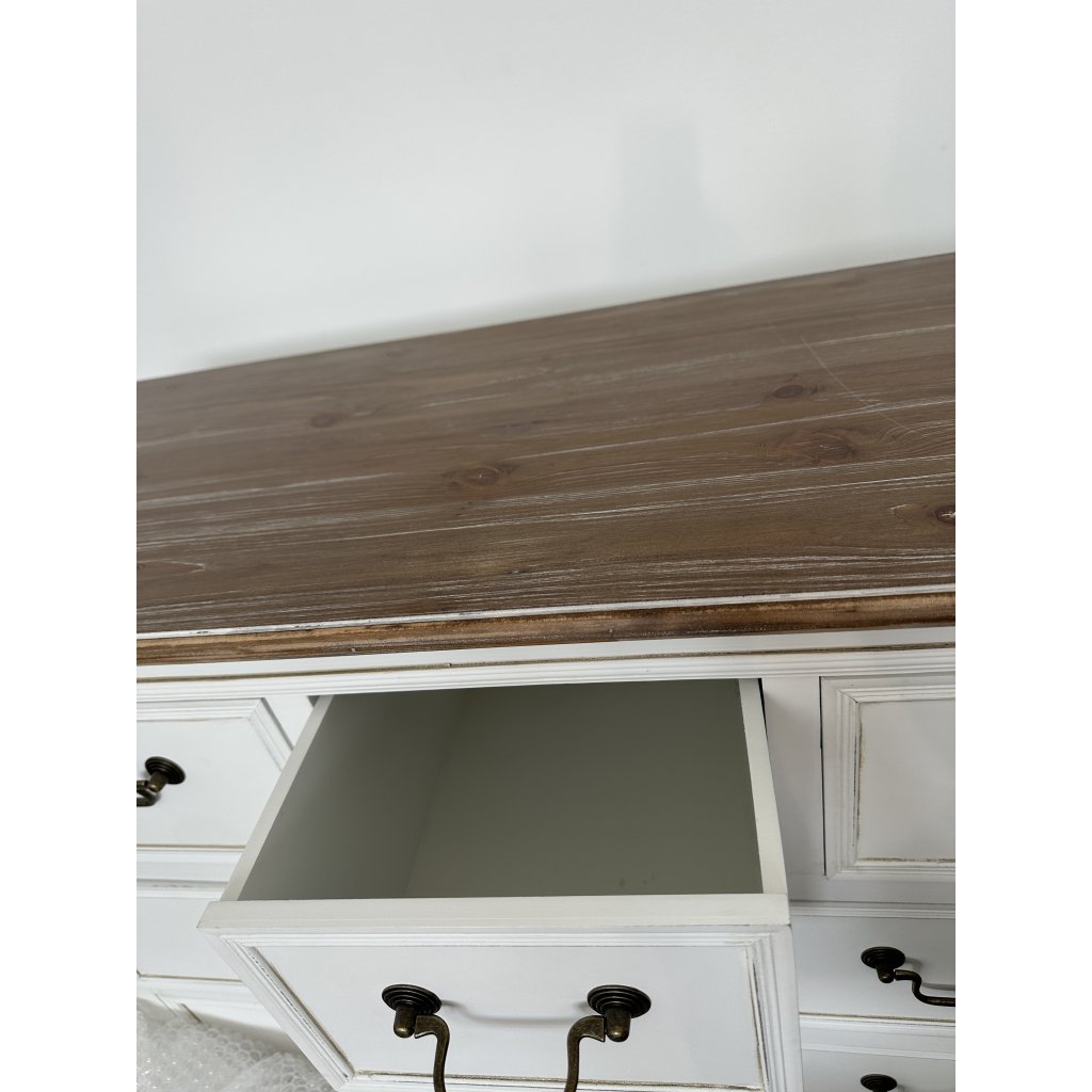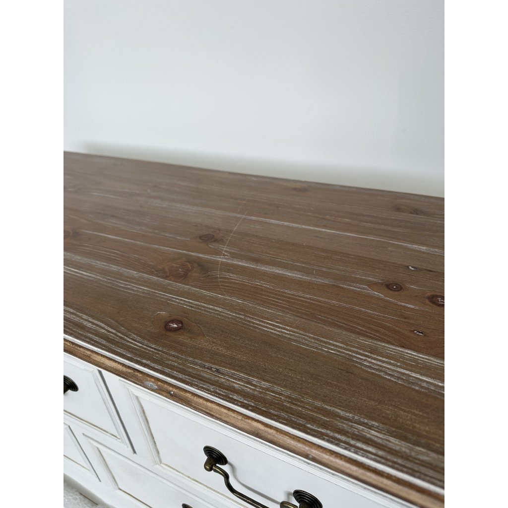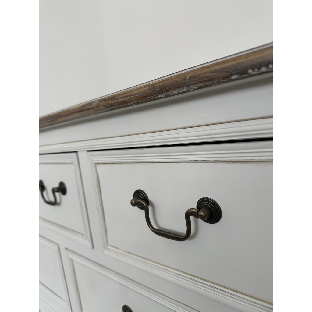 A Rimini RI024 komód egy gyönyörű provence-i stílusú bútordarab, amely azonnal eleganciát és bájt visz otthonába. Ez a modell hat tágas fiókkal van felszerelve, amelyek bőséges tárolóhelyet biztosítanak minden igényhez. Minden fiókot érdekes fém fogantyúk díszítenek, amelyek nemcsak esztétikai értékkel bírnak a komódban, hanem könnyű nyitást és zárást is biztosítanak. A komód érdekesen faragott lábakon áll, amelyek könnyedséget kölcsönöznek neki és növelik a stabilitását. A kellemes világosbarna színű teteje tökéletesen illik a komód krémszínéhez. A bútort összeszerelve szállítjuk.