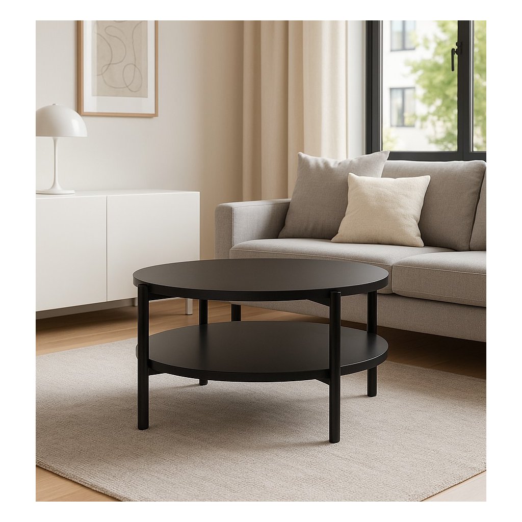 Népszerű dohányzóasztal SIGMA B Fekete lábakkal és egyedi matt fekete felülettel az asztallapon és az alatta található polcon. A felület elegáns és stílusos megjelenést kölcsönöz az asztalnak, így tökéletes bármilyen modern enteriőrbe. A modern dizájnt, a kiváló minőségű anyagokat és a praktikus funkciókat ötvözve ez az asztal a barátokkal és a családdal való kényelmes és hatékony megbeszélések igényeit hivatott kielégíteni.