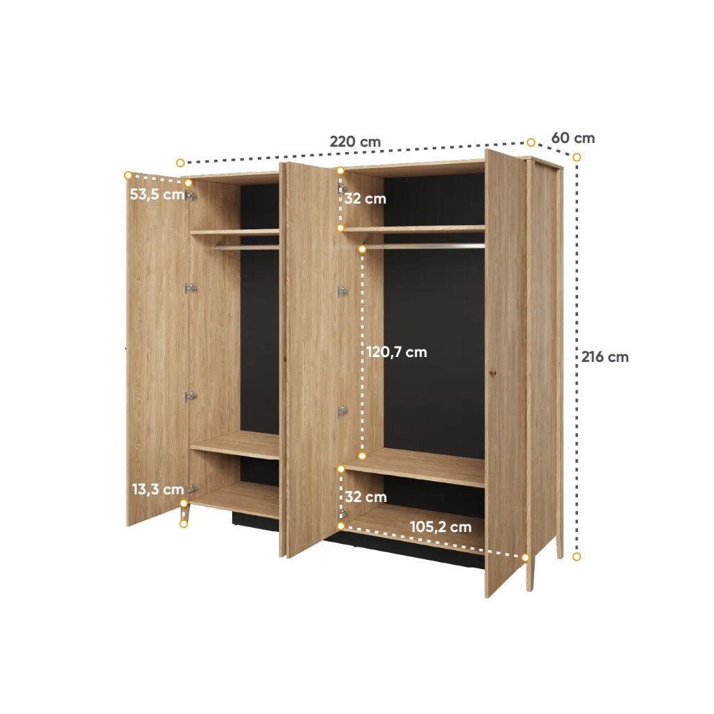 Ez az elegáns KORINA kollekcióbeli ruhásszekrény a praktikumot ötvözi a modern dizájnnal . Olyan bútort keresel, amely segít a rendszerezésben, és egyben egy csipetnyi bájt is kölcsönöz hálószobádnak? A KORINA CZ-01 ruhásszekrény az ideális megoldás. A gardrób tágas, polcokkal és egy fogasrúddal , kellemes olajozott tölgyfa felülettel, ami meleg és természetes megjelenést kölcsönöz a bútornak. További polcok rendelhetők a gardróbhoz.