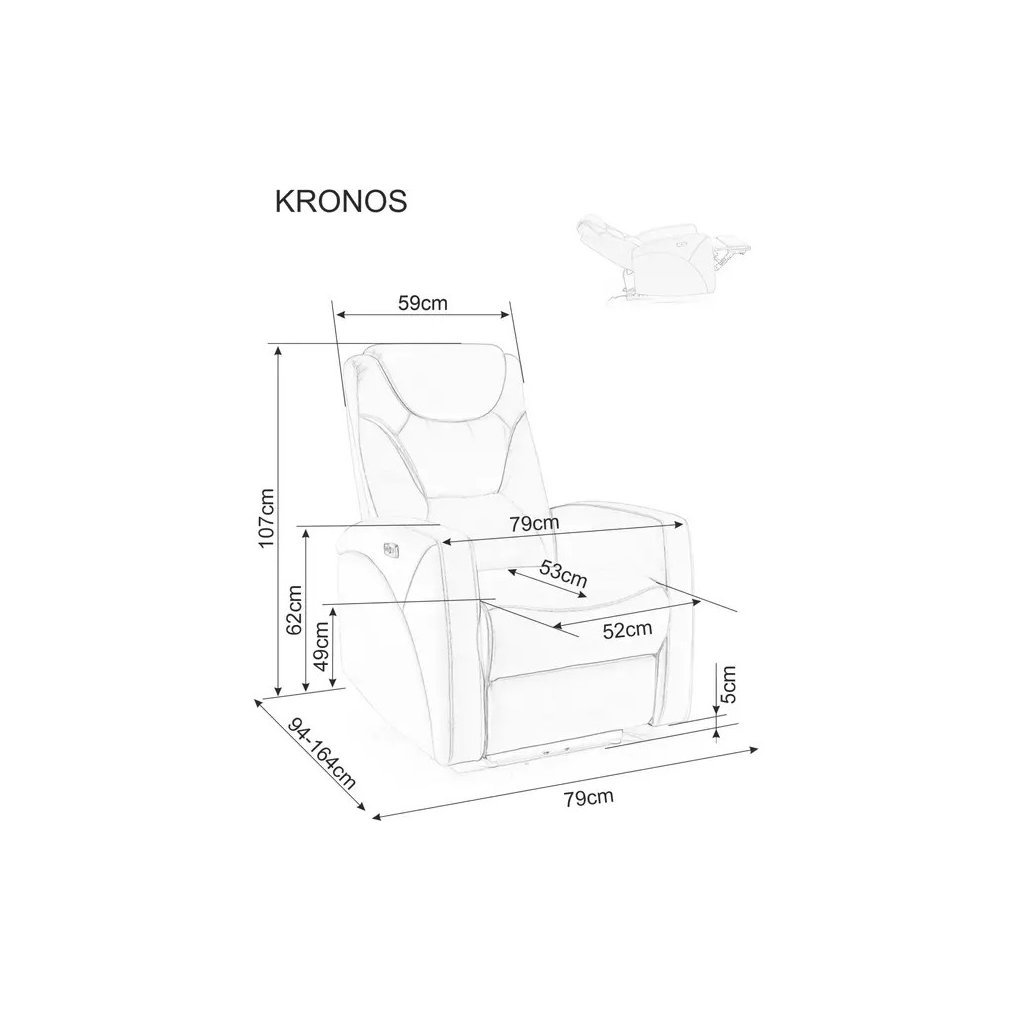 A luxus bársony KRONOS VELVET karosszék kiváló minőségű anyagból készült és modern dizájnnal rendelkezik . A karosszék kényelmes ülést, összecsukható és elektromos , USB-porttal, így többé nem akar majd felkelni belőle. A maximális teherbírás 150 kg.