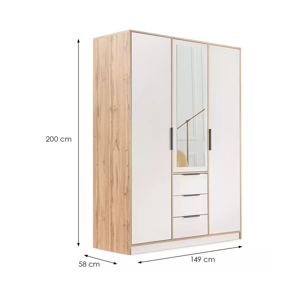 Az ellenállhatatlan LATI D3 bővíthető gardróbszekrény kiváló minőségű és tartós anyagból készült, amely hosszú élettartamot és az Ön elégedettségét garantálja. A bővíthető résznek köszönhetően a gardrób rengeteg tárolóhelyet kínál, ugyanakkor kiváló minőségű dizájnnal, gyönyörű színvilággal és vonzó szettvezetéssel rendelkezik. Az egyszerű fekete fém fogantyúk összhatást kölcsönöznek a gardróbszekrénynek. Tehát ne habozzon tovább, és tegye tökéletessé hálószobáját a LATI D3 gardróbszekrény formájában.